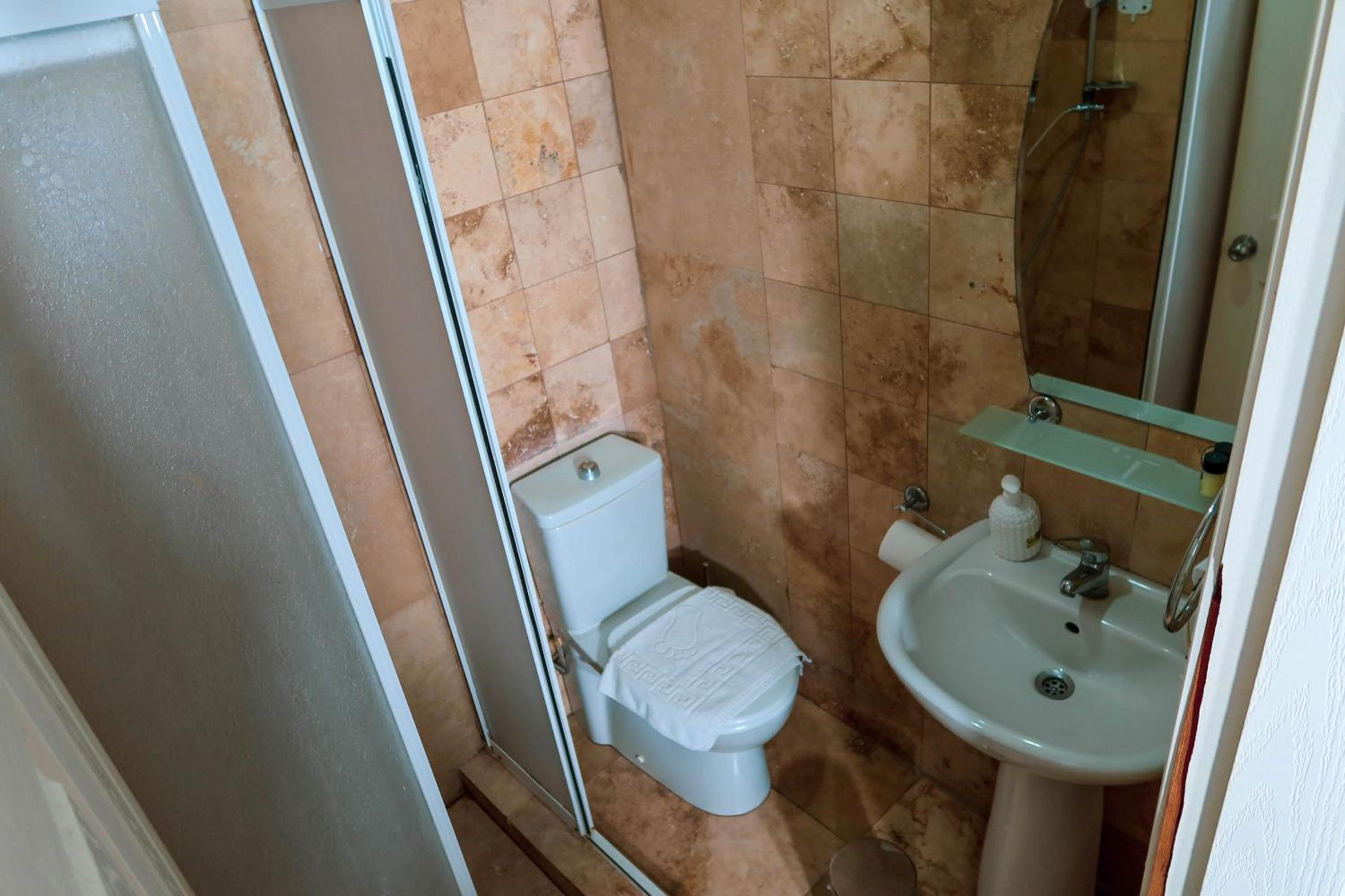 Stanza piccola, bagno molto piccolo. Mobilia trascurata