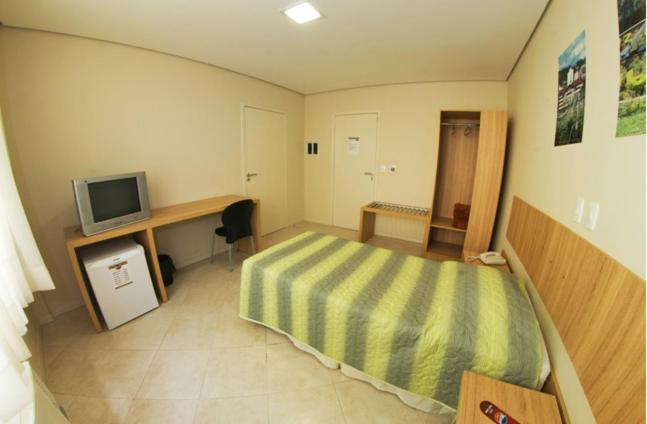 Nosso quarto eram 3 camas de solteiro e eu preferia que fosse uma cama de casal e 1 de solteiro. A recepcionista até verificou depois a possibilidade de trocarmos de quarto, mas aí, já havíamos nos estabelecido e eu já estava esperando o chuveiro aquecer para tomar banho.