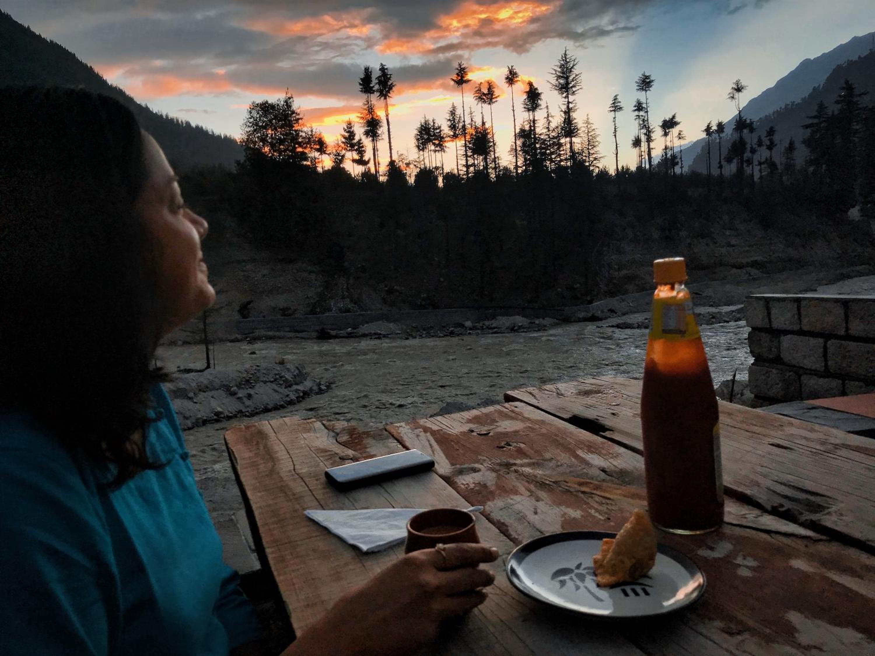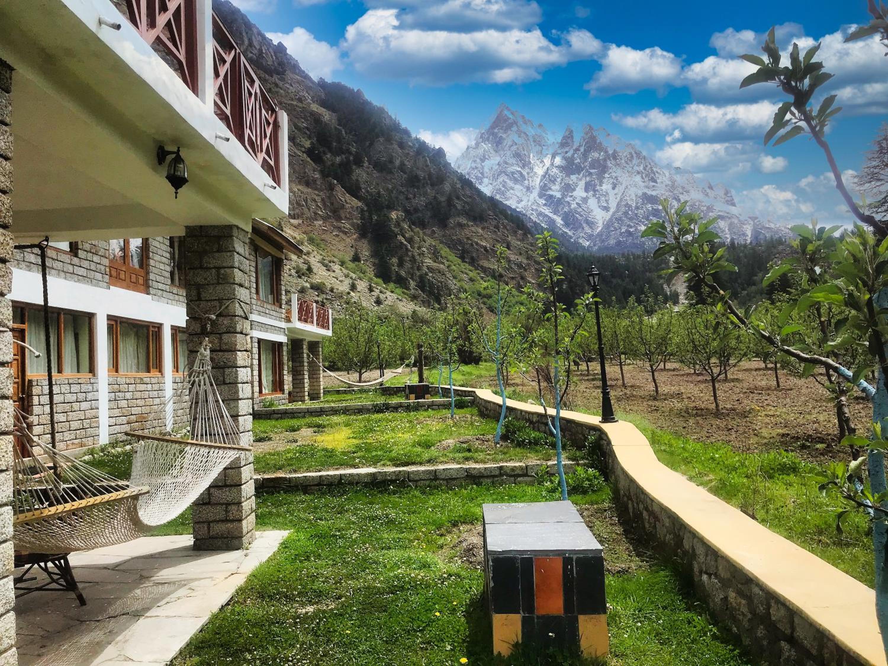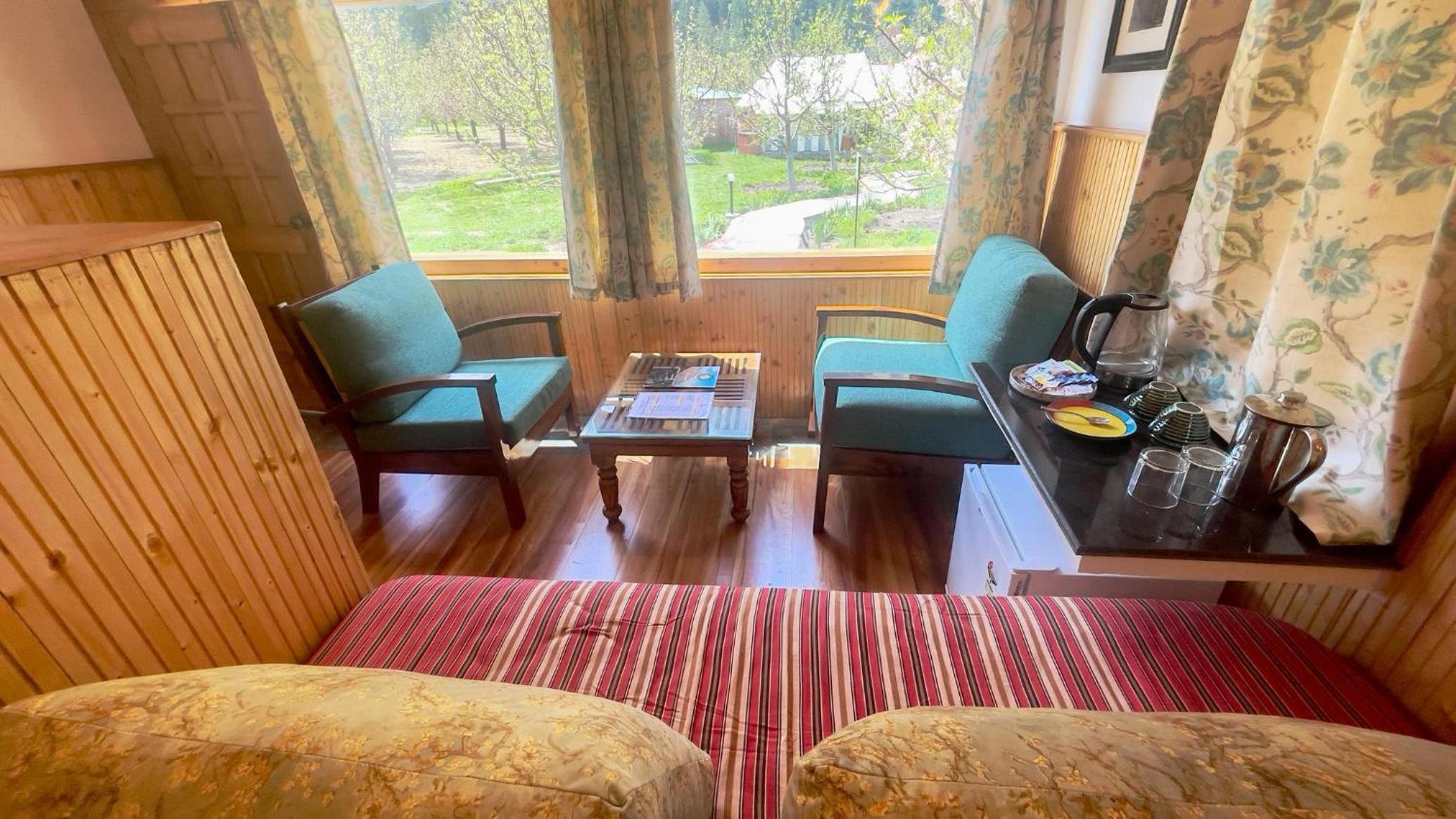 Superb location within an Apple orchard. Definitely the best resort property anywhere around Sangla. The fact that it is right next to the flowing Baspa river, surrounded by towering snowcapped mountains, the sights are simply breathtaking sitting in the open patios next to our room. The evening bonfire for all the guests to meet up was a unique experience. We did get to meet many interesting people. We stayed in the main building, with a lovely room with a sit-out. The bed had electric warmers which was truly comfortable. And good hot water available at all times. We were impressed with the quality and variety of food on offer, and the resort definitely provides the atmosphere to enjoy every meal in the true lap of nature.