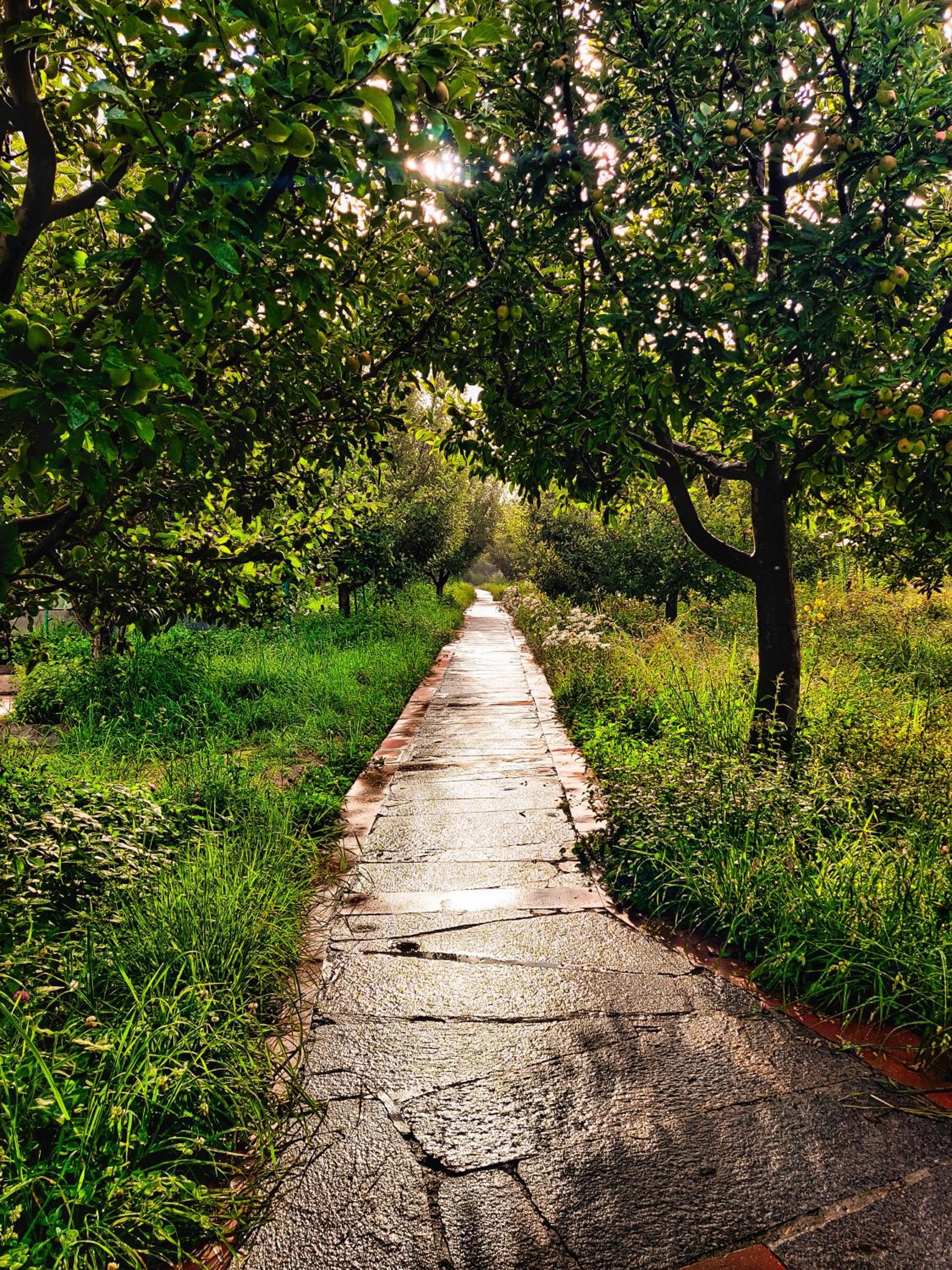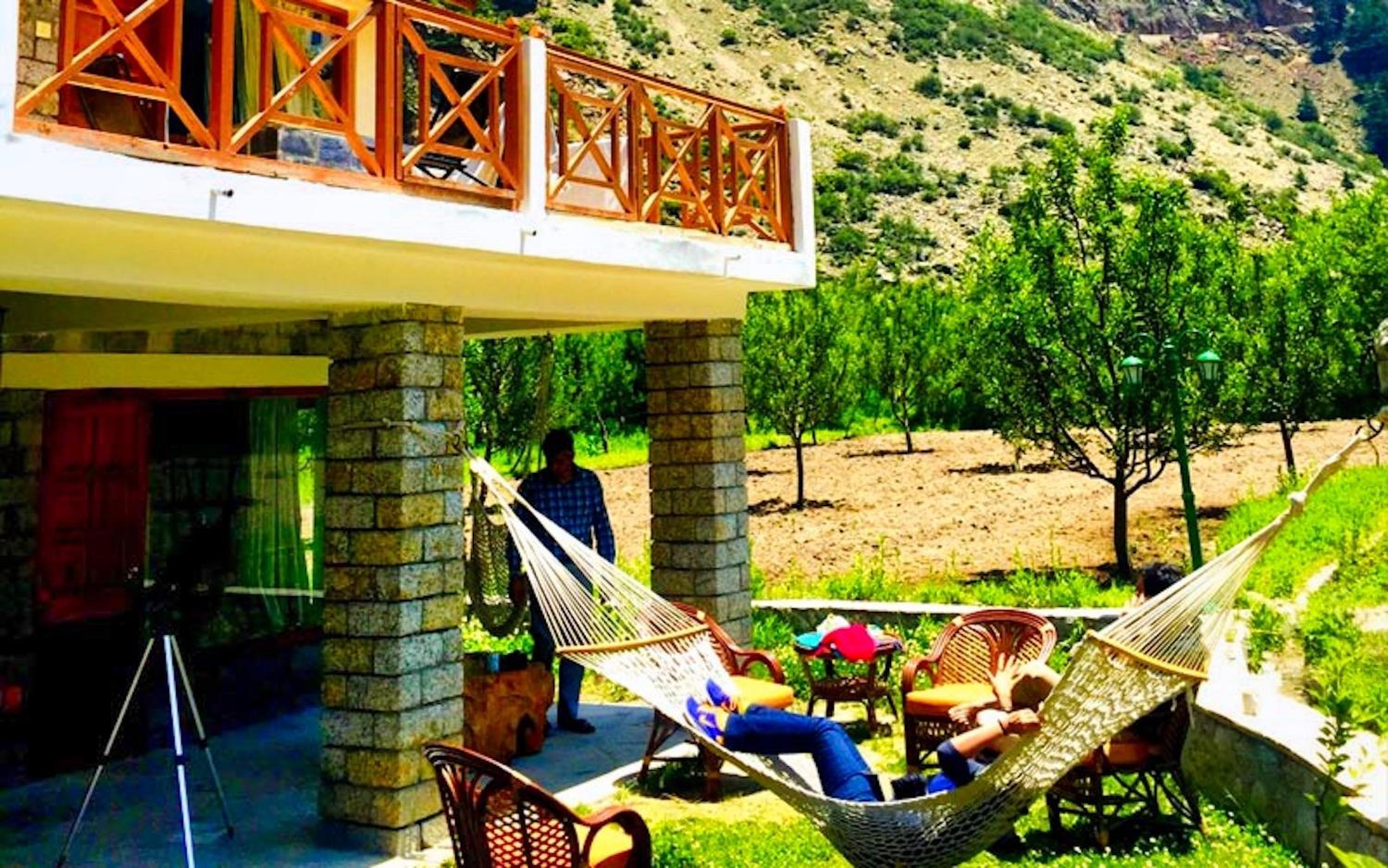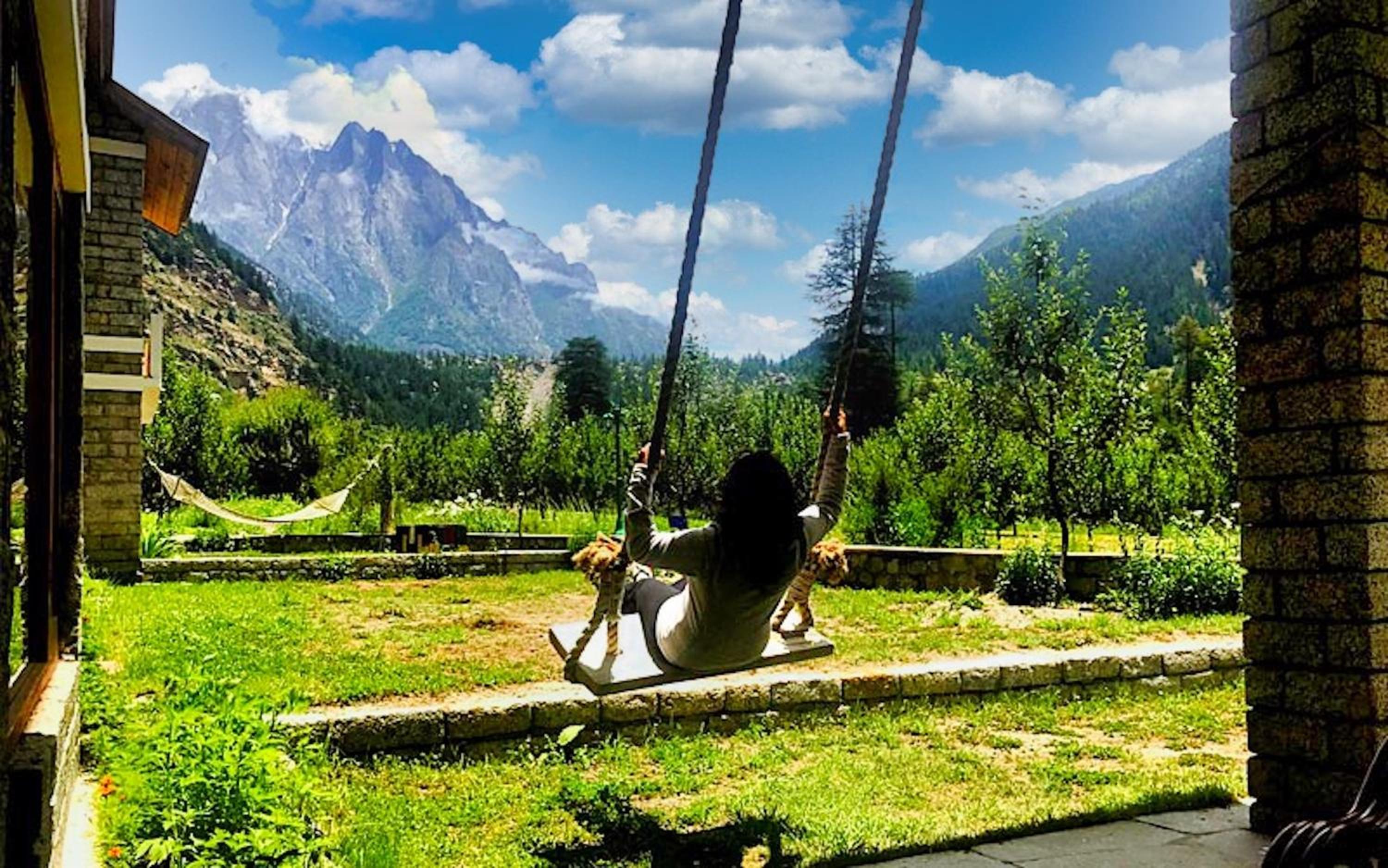 The beautiful wooden cottage inside the apple orchard, nicely maintained and manicured garden and walking pavements, surrounded by snow capped mountains and flowing Baspa river in Batseri , is a heaven on earth 😁