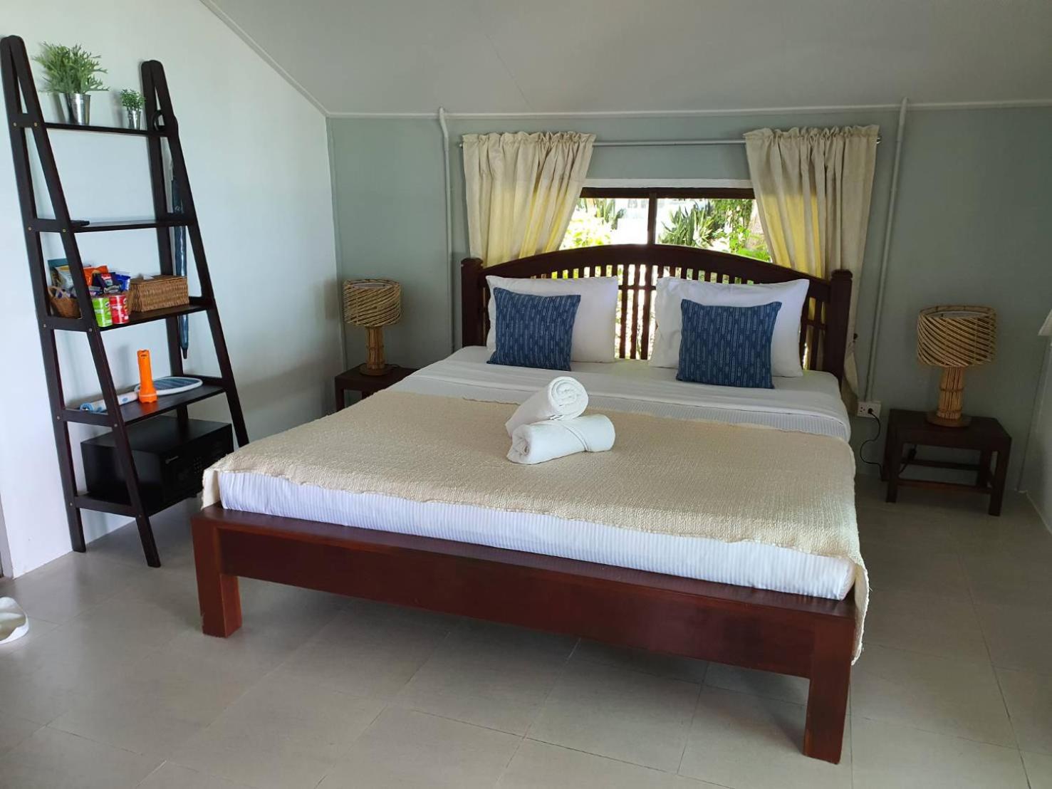 The air-conditioned rooms at Blue Bay Bungalow are equipped with modern amenities such as a flat-screen TV, a safety deposit box, and a private bathroom. Guests can relax in comfort with the provided bed linen and towels.