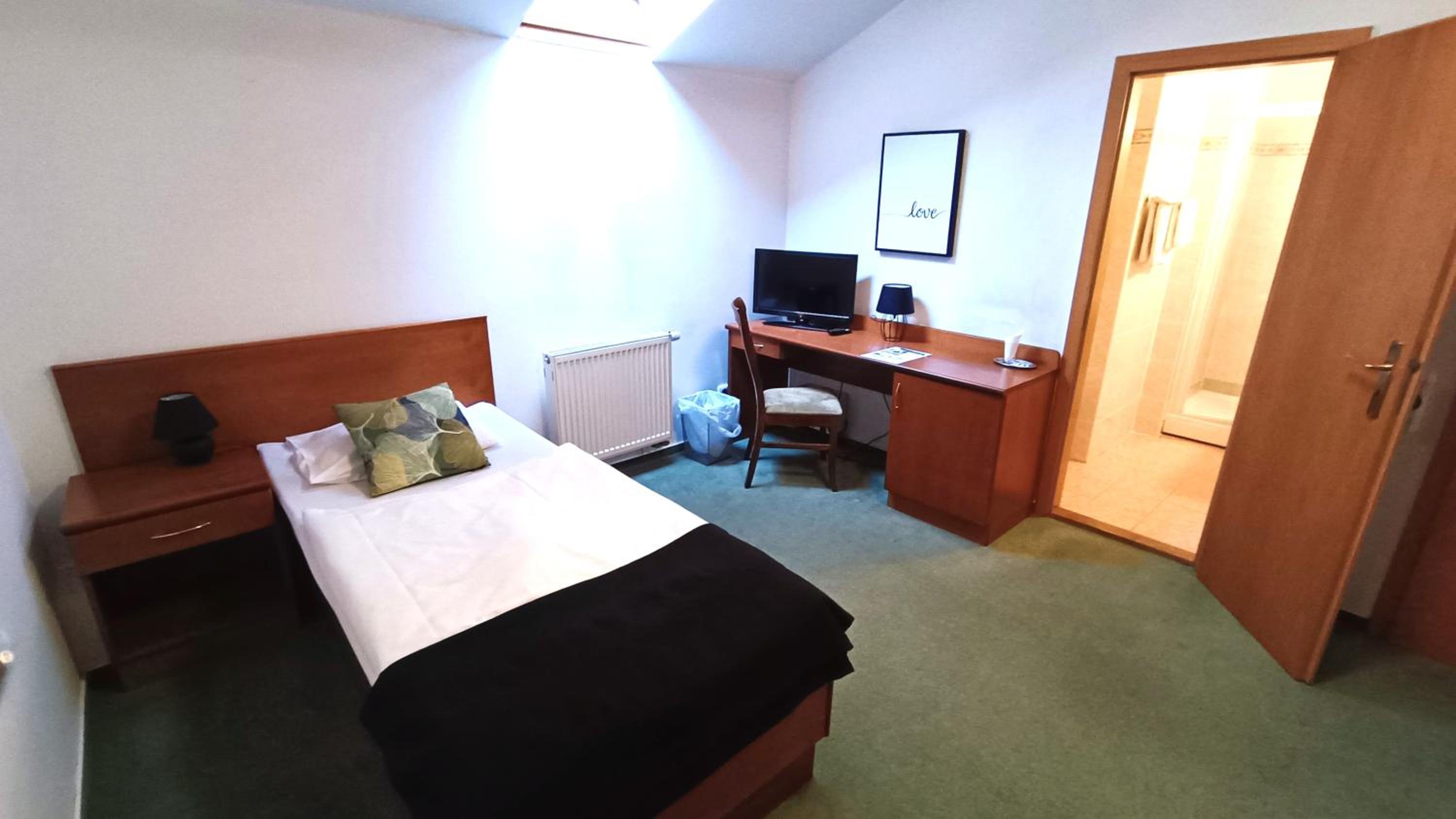 Bardzo fajny obiekt. Pokoje i łazienki czyste i zadbane. Mała lodówka, czajnik w pokoju, biurko, krzesła. Sympatyczna obsługa. Bardzo fajne śniadanie - otwarty bufet, jest z czego wybierać. Jedzenie świeże i smaczne, kawa z ekspresu. Polecam.