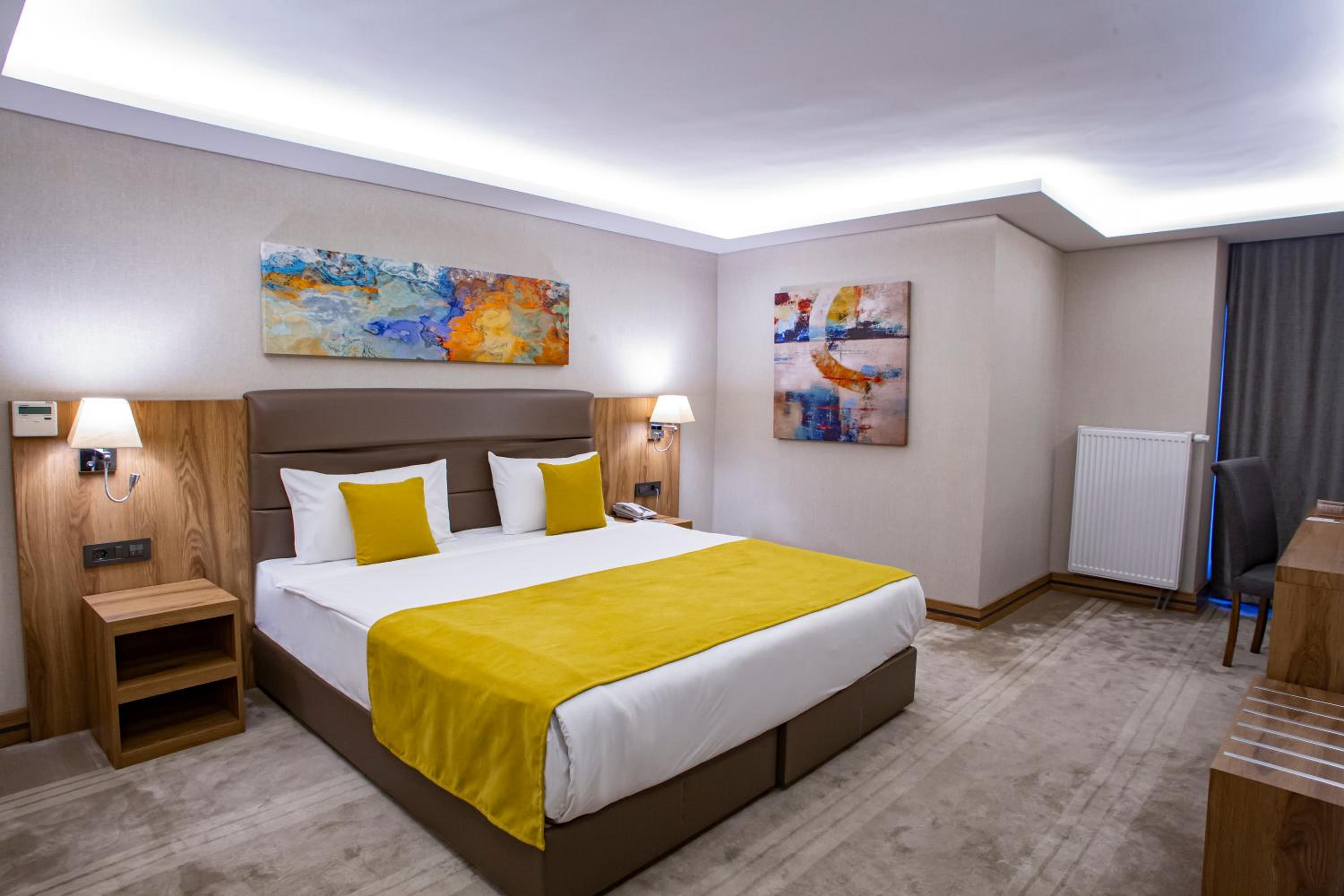 Royal Termal Hotel in Bursa offers a 4-star experience with modern amenities and breathtaking city views. Each room is equipped with air conditioning, TV, and a safety deposit box. Wake up to a delicious buffet or continental breakfast before exploring nearby attractions like Ataturk Museum and Muradiye Complex. Enjoy the convenience of free WiFi, room service, and a 24-hour front desk. Relaxation and Convenience