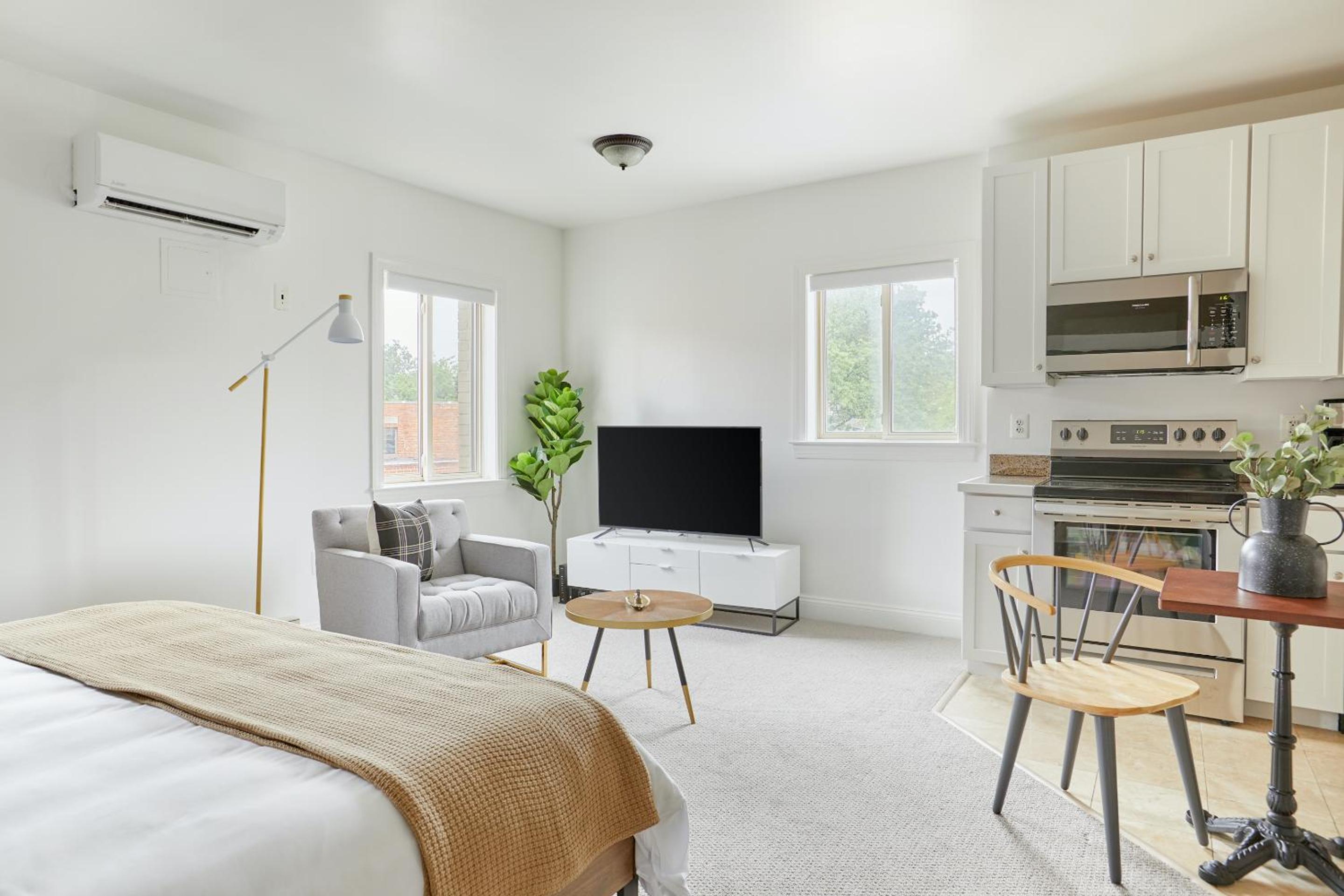 Complete with a fridge, stovetop, coffee machine, and kettle, our units are designed to cater to your every need. Whether you're visiting Air Force Memorial or Tomb of the Unknowns, Sonder Del Ray offers a modern and comfortable retreat.