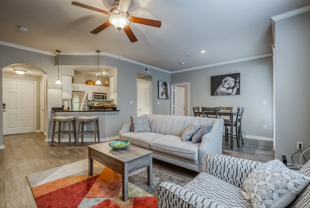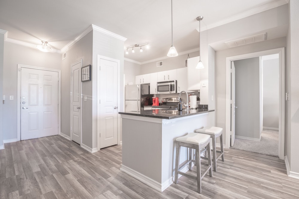 Needs some maintenance. Furniture is a bit wobbly. Apartment was for the most part clean, but the floors were not cleaned very well. Kids have dirt on the bottom of their feet walking around barefoot. Customer service was great. Quick responses and available help. Decent stay, but would be a 5 if those items were addressed. Location is close to a walmart, target and local restaurants.