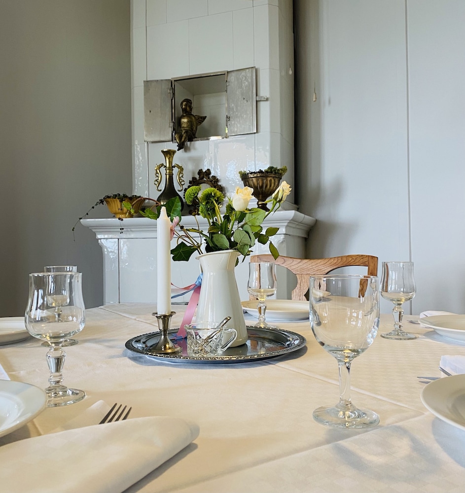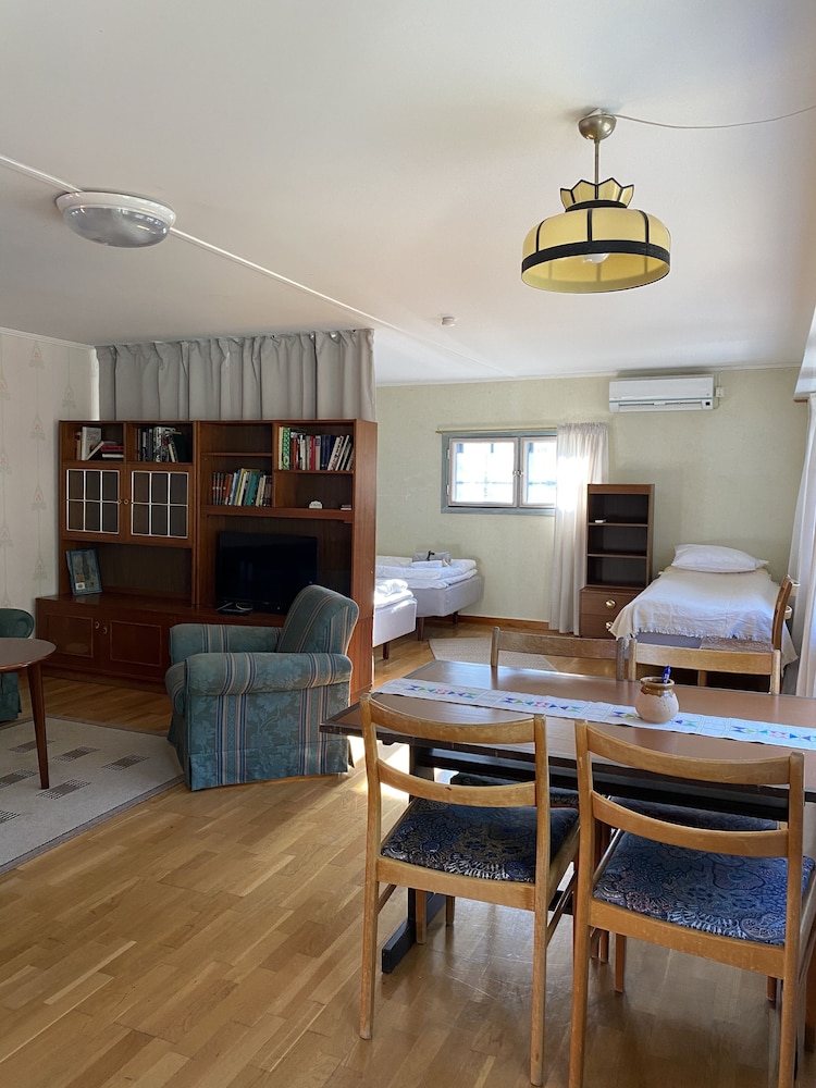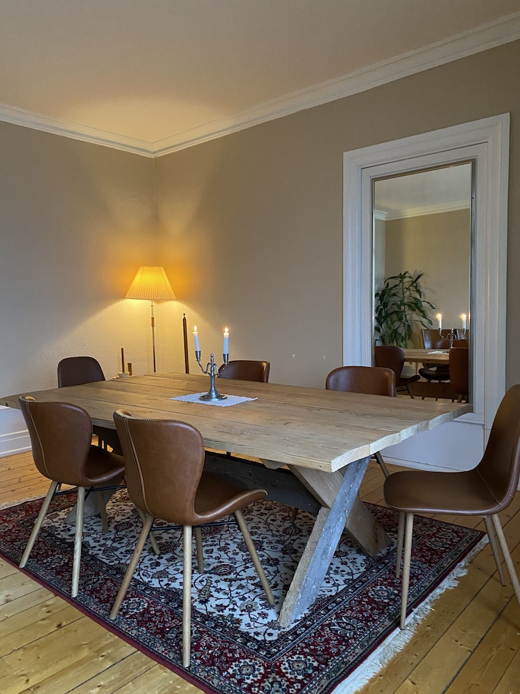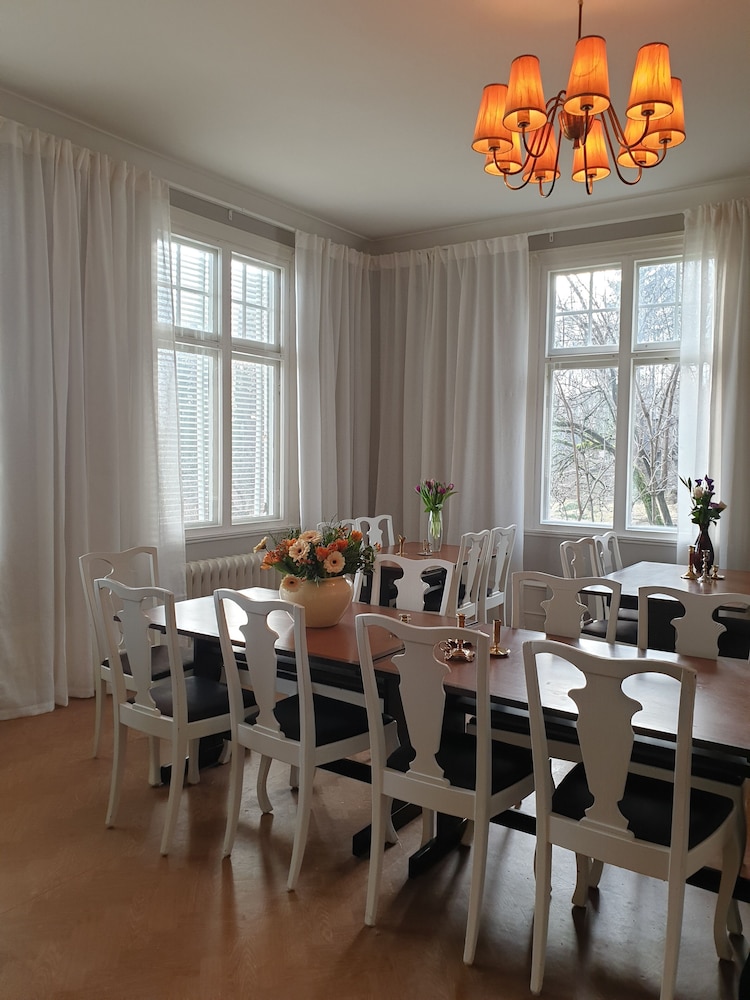 Gammalt, stort, charmigt hus. Tillgång till stora ytor utomhus. I källaren finns bland annat dart och biljard att fritt använda. Laddmöjligheter för elbil. Ingen hiss.