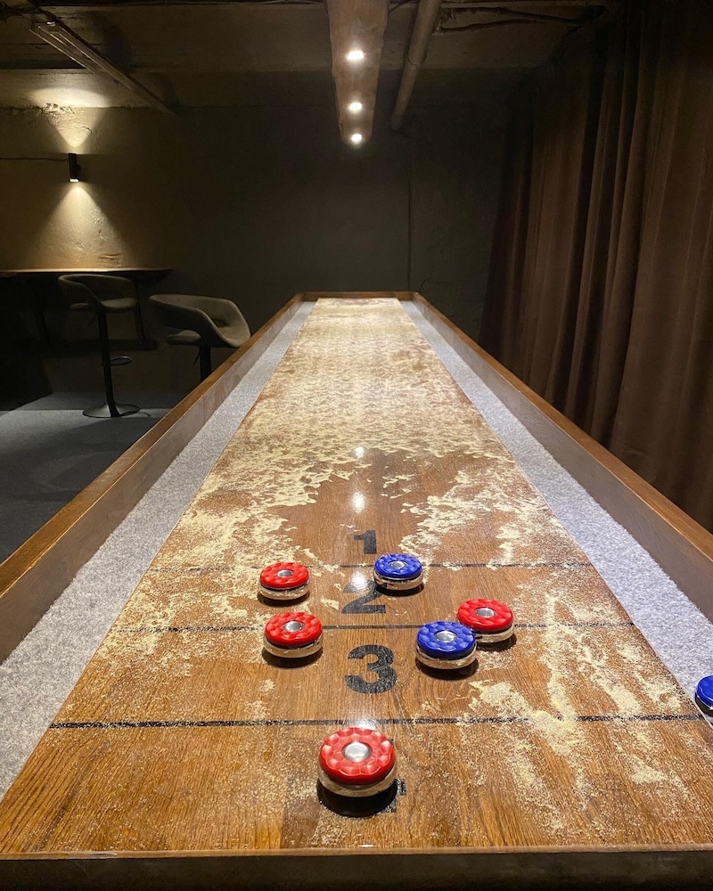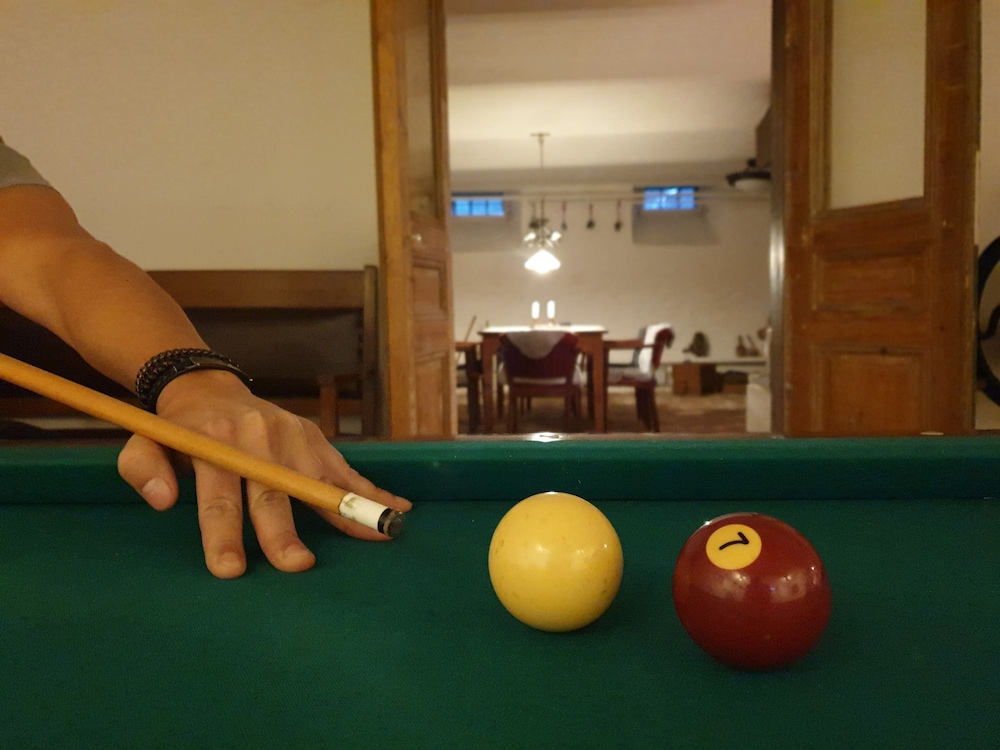 Underhöll oss med biljard, pilkastning och shuffelbord som fanns i källaren- bara att roa sig!!