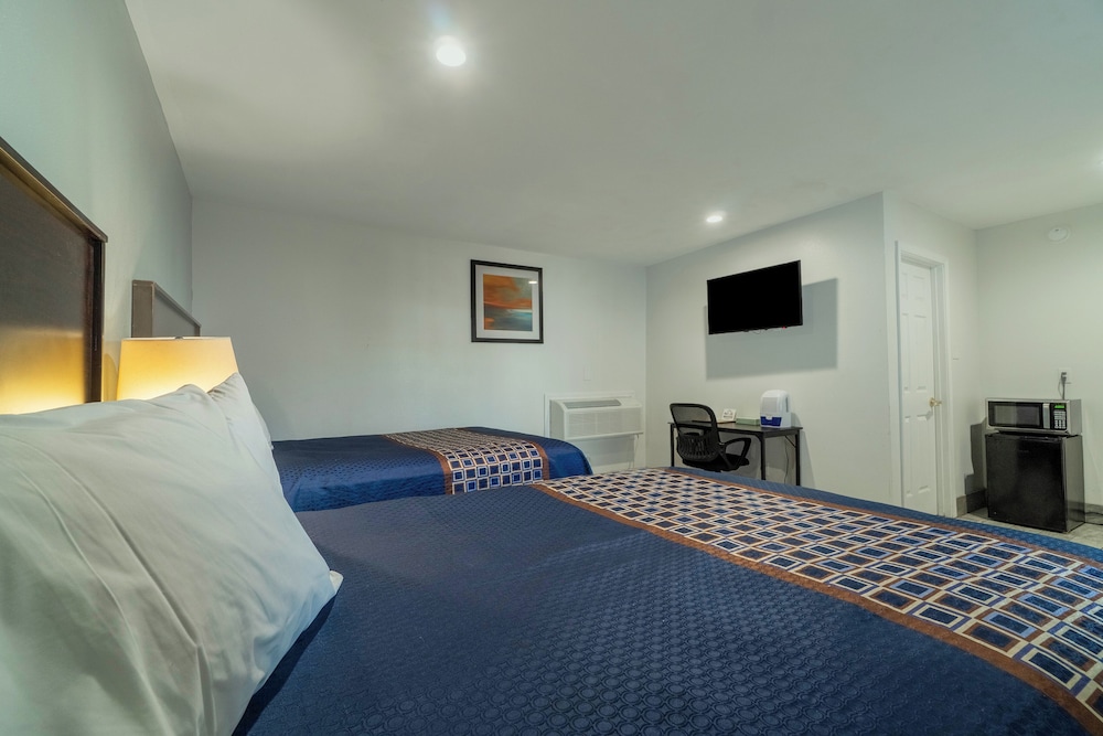 The room was NASTY roach poop on the bed and live roach on one the bed. Roach poop all over the room. Pictures are deceiving. That’s why I booked it but was very disappointed. I would not recommend anyone to stay there. Tub was clogged, rusty and the employee asked if we wanted a plunger. What the heck that not our job. Wished we could get out money back.