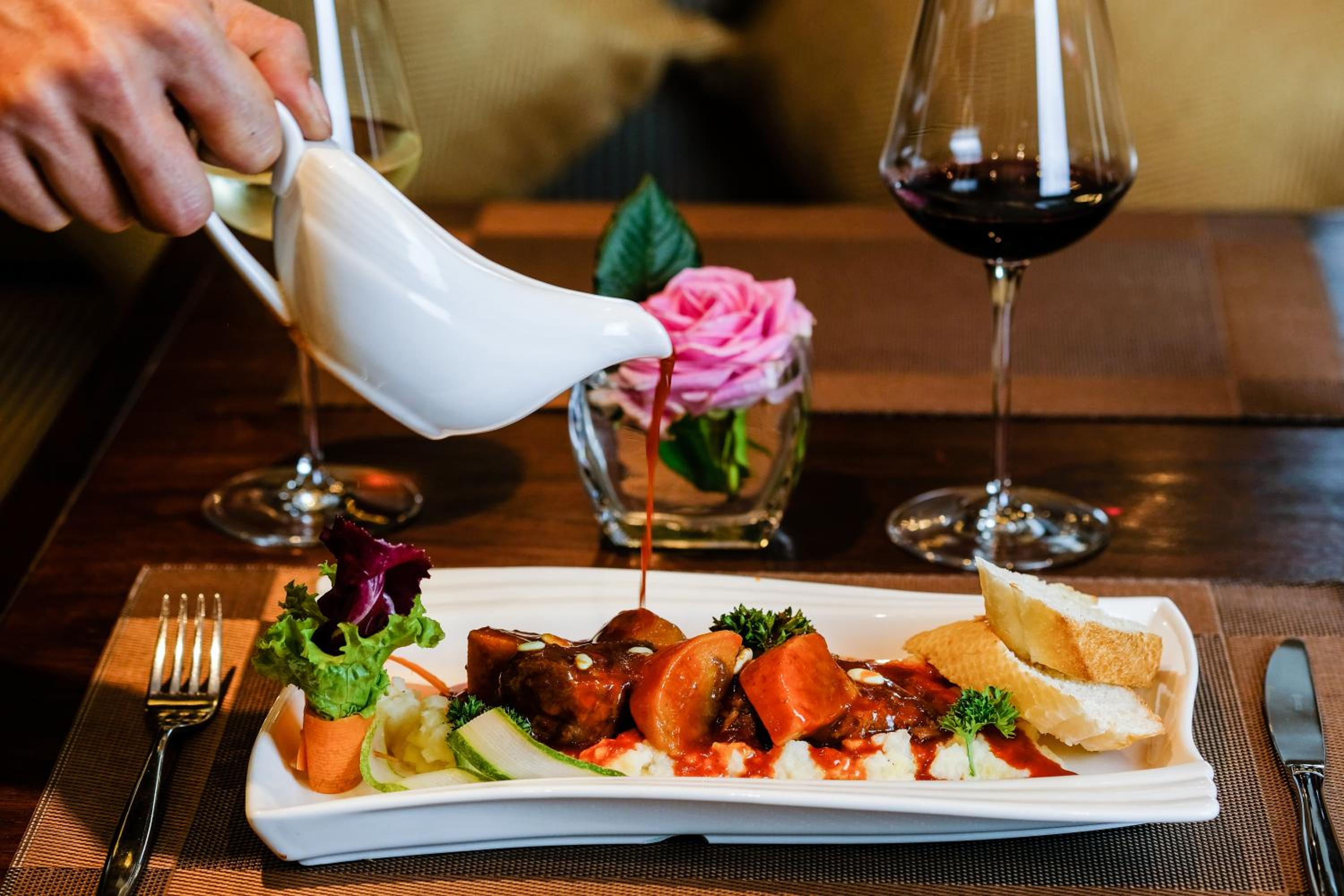 Unwind by the seasonal outdoor pool or sip a drink at the bar. For those looking to stay active, the hotel offers bike rentals for cycling enthusiasts. After a day of sightseeing, guests can relax on the sun terrace and take in the scenic surroundings.