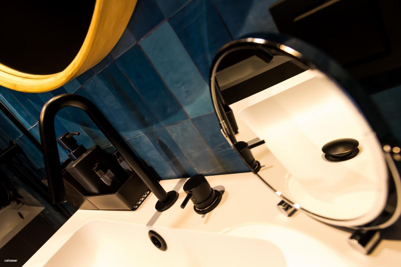 Le store dans la douche n'a pas lieu d'être car l'eau éclabousse dessus en prenant sa douche. Il serait judicieux d'ajouter un film opaque sur le double vitrage. La literie pas excellente et j'ai pu constater des petites tâches sur un des draps blancs.