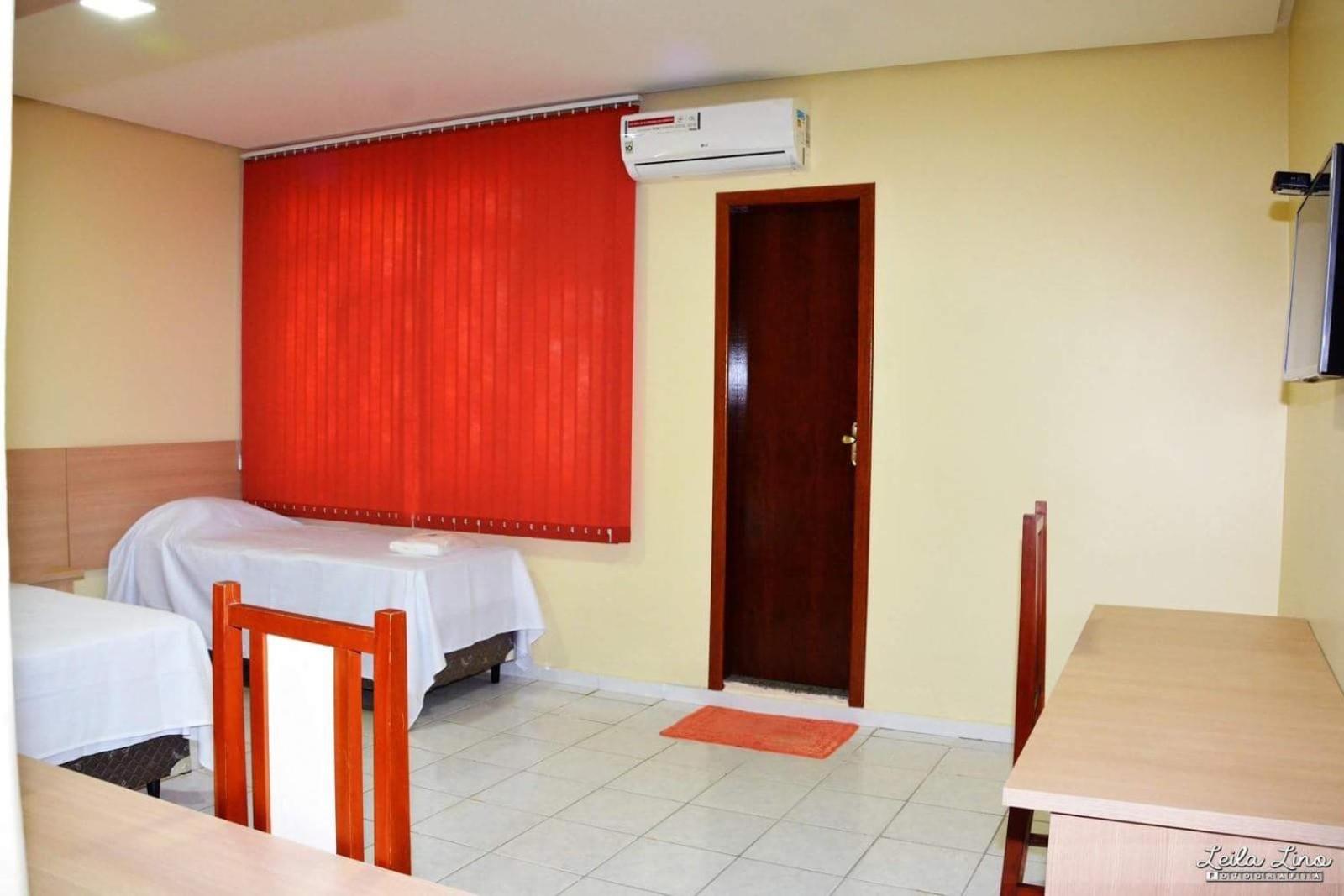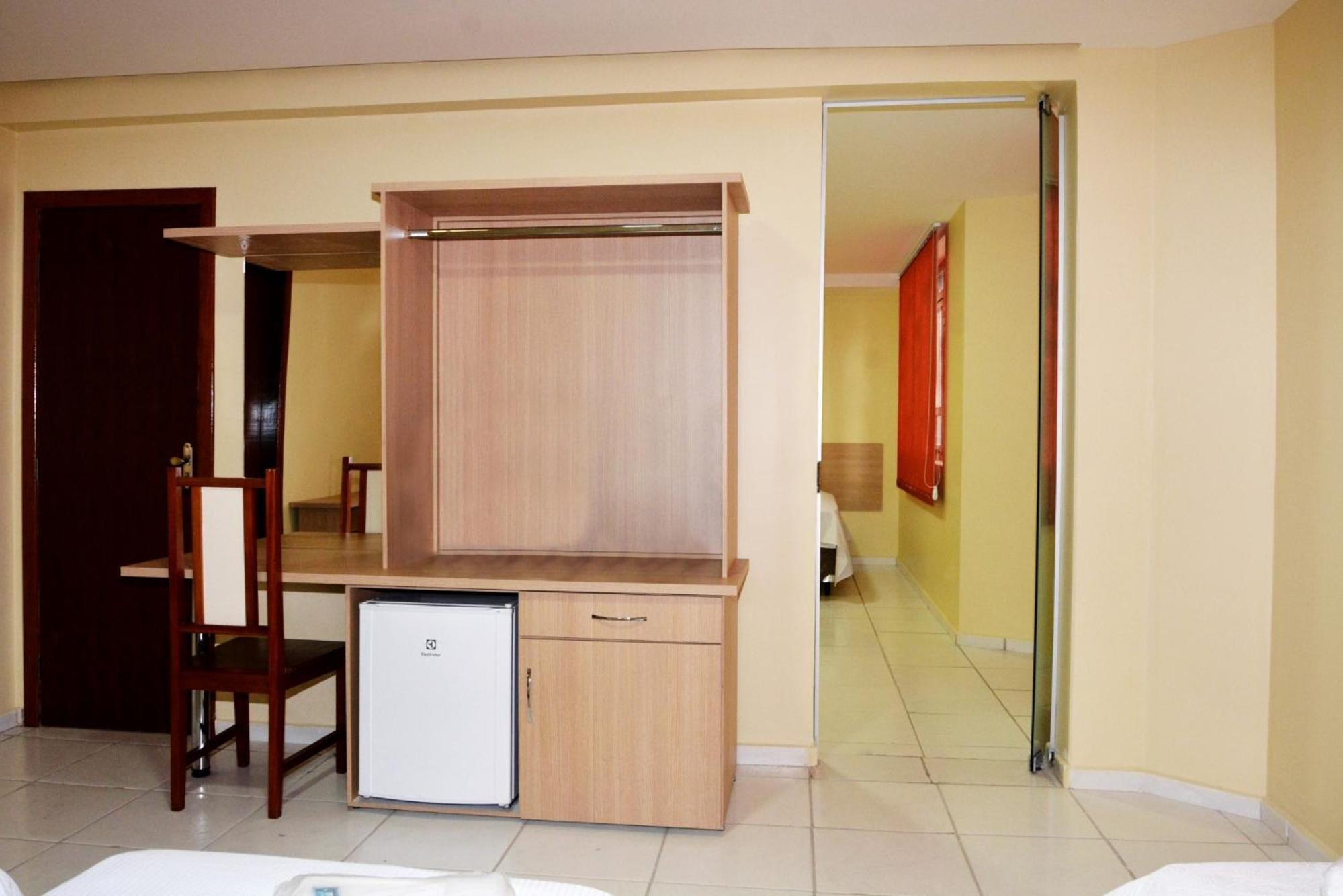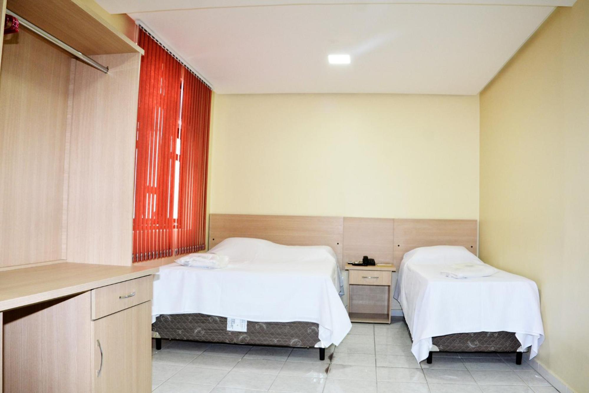 Quarto amplo, maior que a média. Consideração: a TV é pequena para a distância até às camas. Os controles podem ser testados antes de cada ocupação para saber se as pilhas estão boas. A luz na cabeceira da cama poderia ser de um abajour ou algo parecido. A inclusão de mais dois móveis de canto( antigamente dizia criado mudo) entre as camas, para que cada um da cama solteiro tenha onde colocar tel pra carregar e outras coisas pequenas.