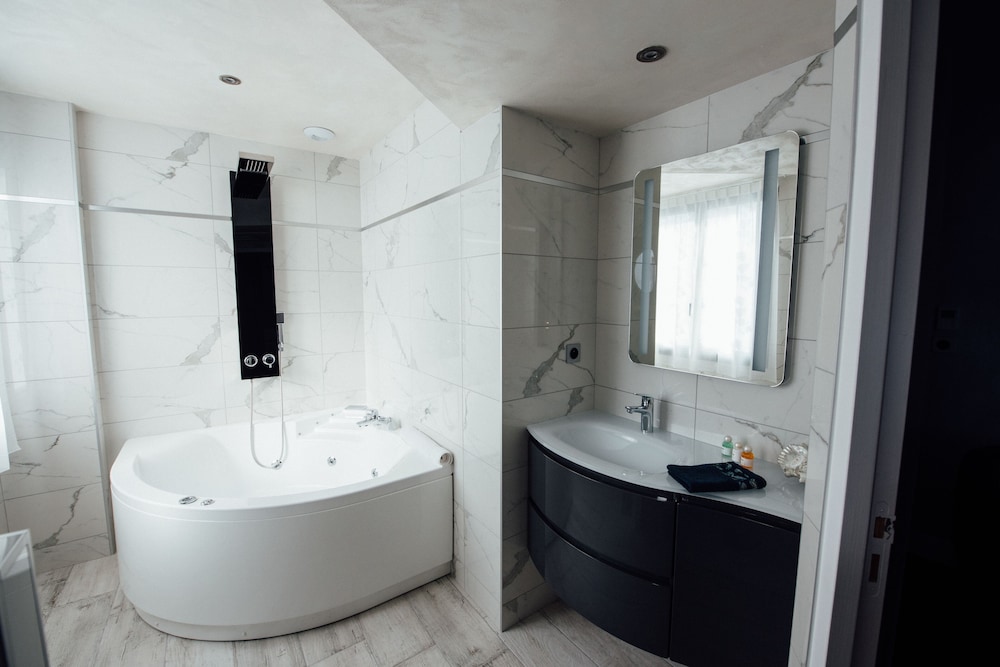 Le seul petit bémol : qu’on ne puisse pas éteindre la lumière de la SDB quand on profite de la baignoire et des différentes lumières colorées