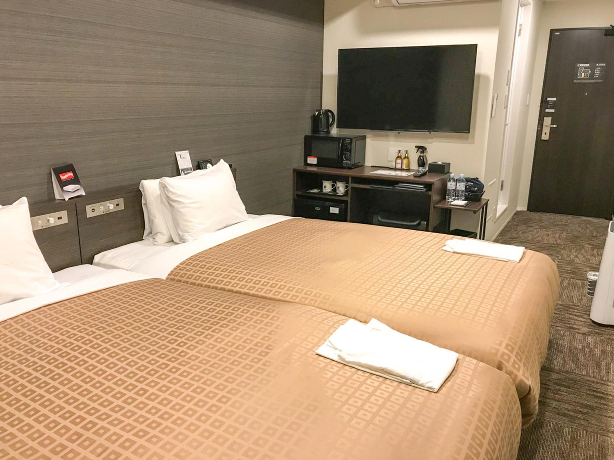 The room was compact but clean, typical of business hotels in Japan. Heating worked well. The bed was comfortable enough for a good night’s rest.