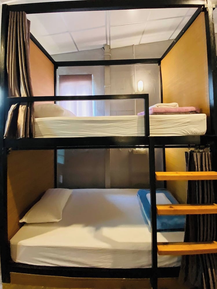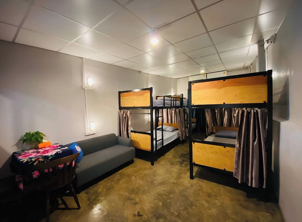 The dorm had 8 bunk beds. Each had one electrical point, private light, a privacy curtain, a towel and a light duvet. The room was cooled by an AC, which worked well and was quiet. The bed mattress was very firm, even by Thai standards.