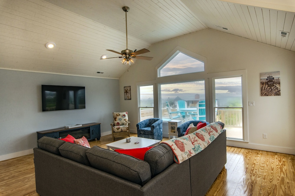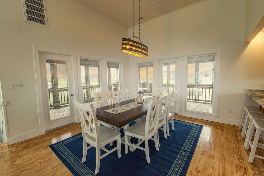 The vibe is what I woould call "coastal elegant." The location is superb, right on the beach in Duck , on the Outer Banks of North Carolina. We did a lot of walking around on the sound side nature trails and reading ion the second floor of the Beach House.
