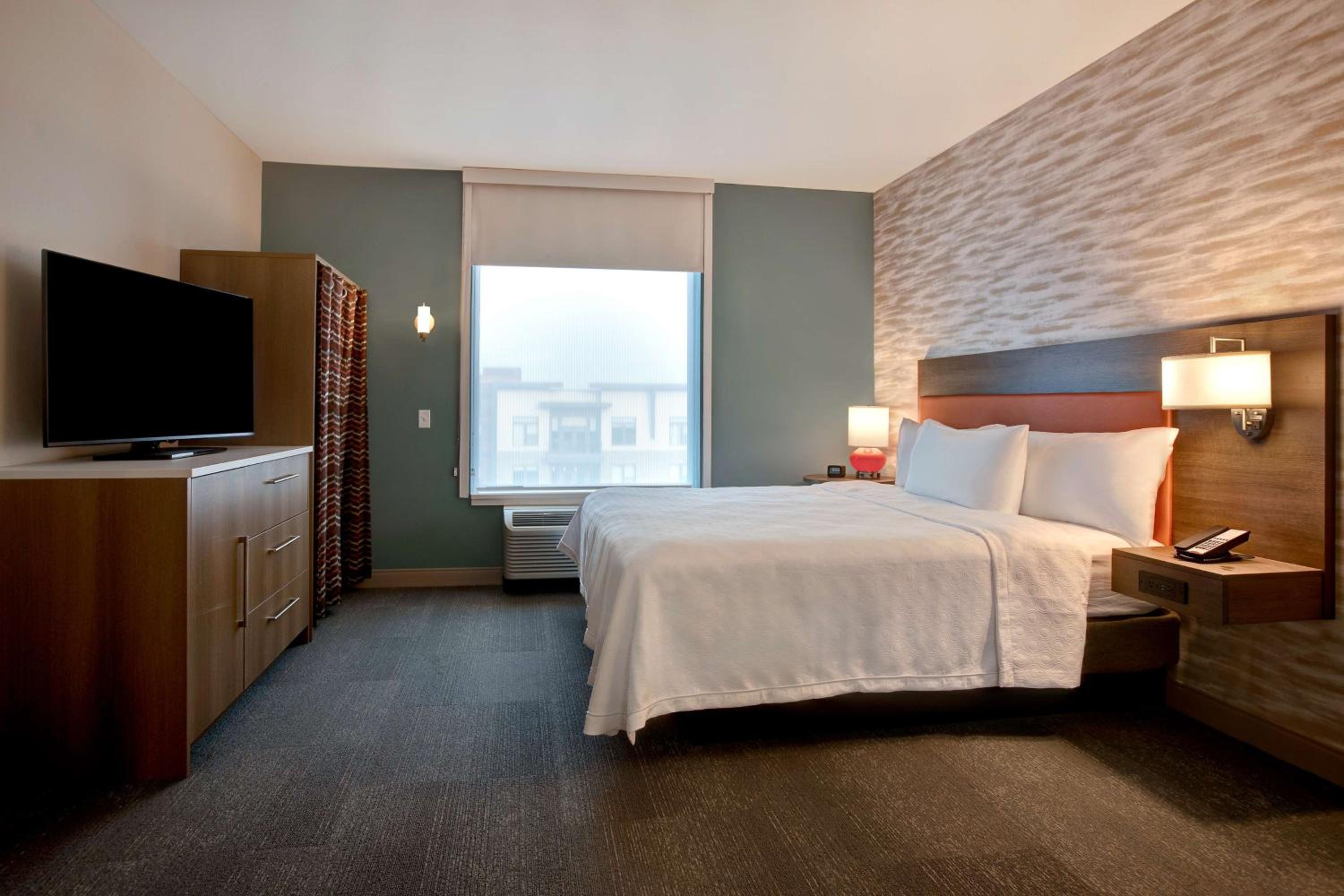 Home2 Suites By Hilton Carmel Indianapolis offers contemporary rooms with free WiFi and air conditioning. Guests can enjoy a comfortable stay with amenities like a fridge and a work desk in each room.