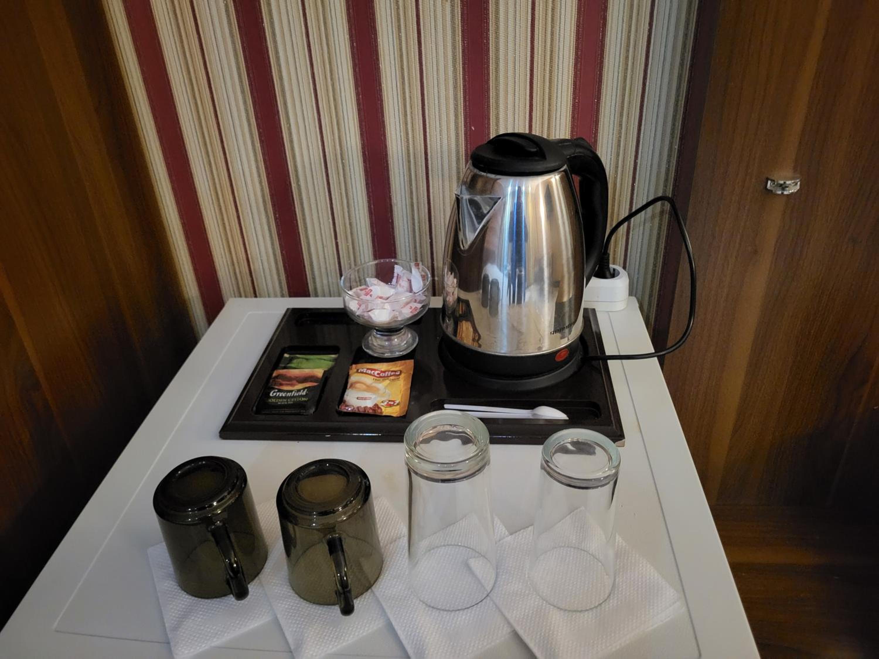 Breakfast is served in your room and there is no other choice than eggs, sausages and bread.