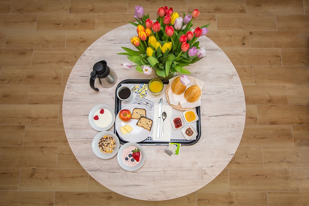 The people who run this establishment are soooo welcoming and kind. Our room was perfect for one night. Just a few steps away from the Moosach public transit train station, good food options (Los Companeros was AWESOME), and felt so safe and residential. The hotel is also conviently located two stops away from a MEGA shopping centre (Olympia mall that is connected to the train station!) The blinds were motorized so that was very cool! We felt the hallways had a strong odour (paint? Chemicals? Not sure) but thankfully our room had no weird smell and the air felt fresh. The room was very quiet. The shower was great with a hand held shower head (only one setting but it was perfect for us). They provide a 3 in 1 gel soap (hand soap, body wash and shampoo) that smelled light and nice. This is NOT a high end luxury place, but for the price we paid, we really cannot ask for more!! Super satisfied, I wish the owners success. Thank you so much.