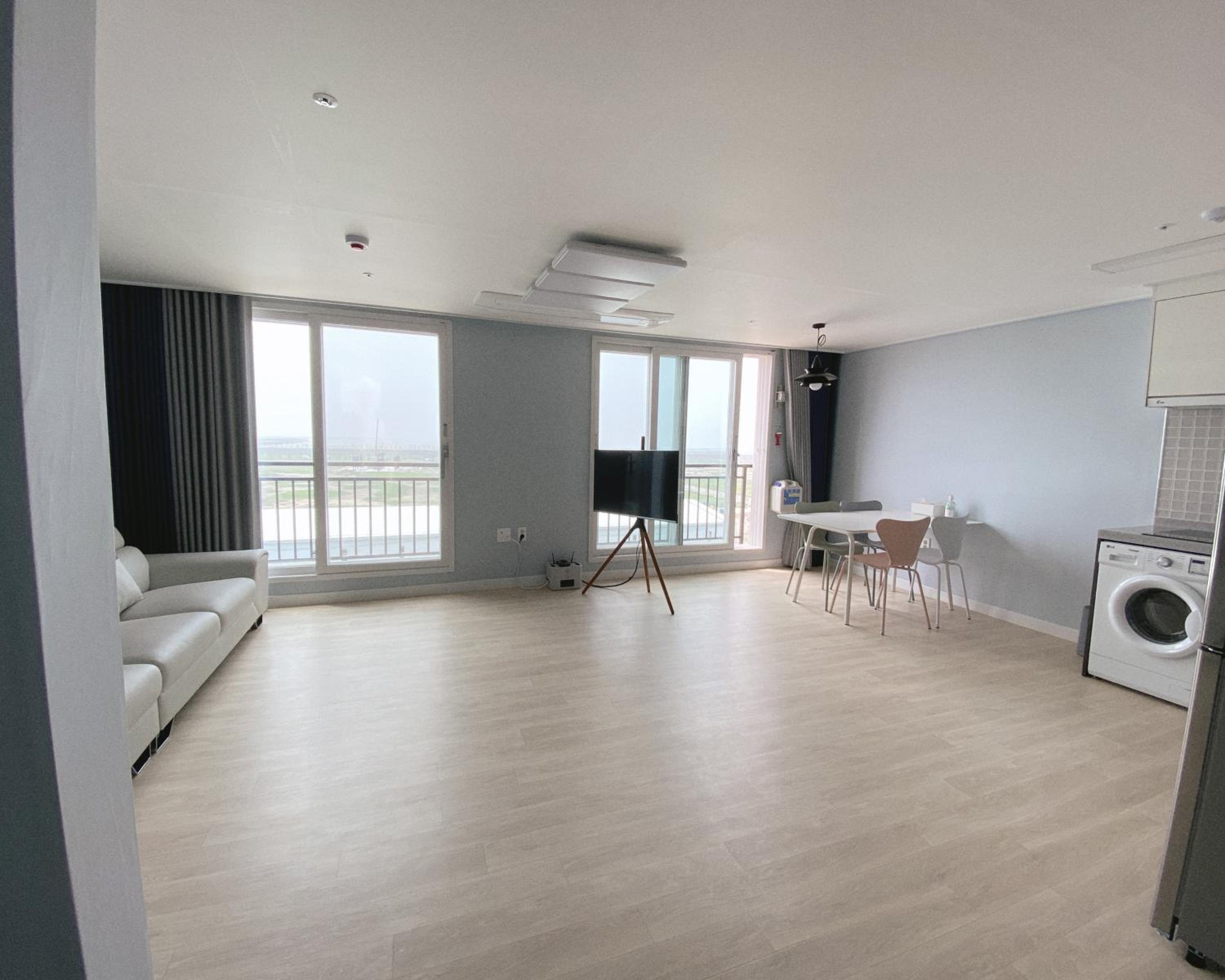군산 시내에서 차로 30분 정도 거리인 공장지대에 위치해 있습니다. 바다도 잘 안 보여요. 냉장고에 생수도 한 병 없고 방바닥 데워지기까지 시간이 너무 오래 걸려요. 숙소 주변에 괜찮은 식당이 없어요. 배민 배달은 거리가 너무 멀다고 취소 당했어요.