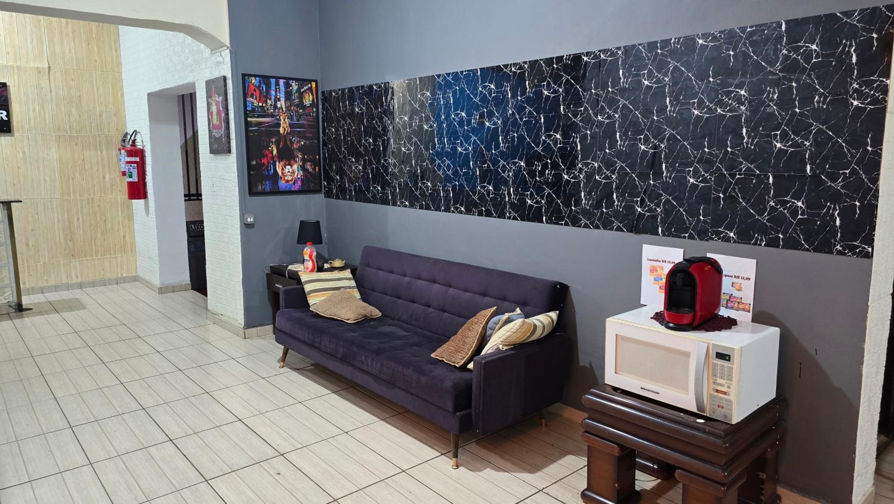 Quarto extremamente insalubre, sem ventilação adequada, com janelas voltadas para corredor interno fechado, sem exaustor ou ventilador, com forte presença de mofo. Banheiro em condições precárias, lixo sem recolhimento por vários dias e apenas dois banheiros para atender dois andares. Micro-ondas de uso comum enferrujado e com sujeira acumulada. Péssimas condições de higiene e total falta de manutenção.