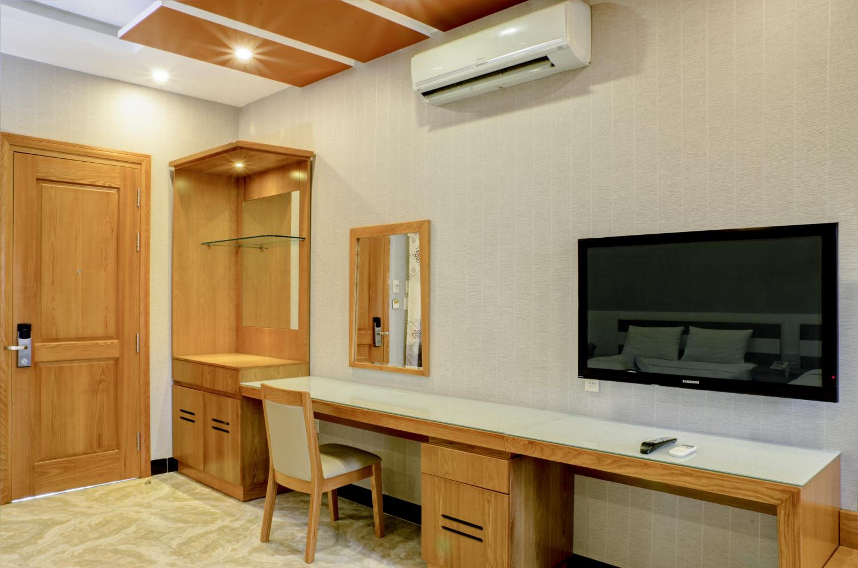 Tivi hỏng cáp không dùng được. Phòng chỉ có máy lạnh không có quạt.