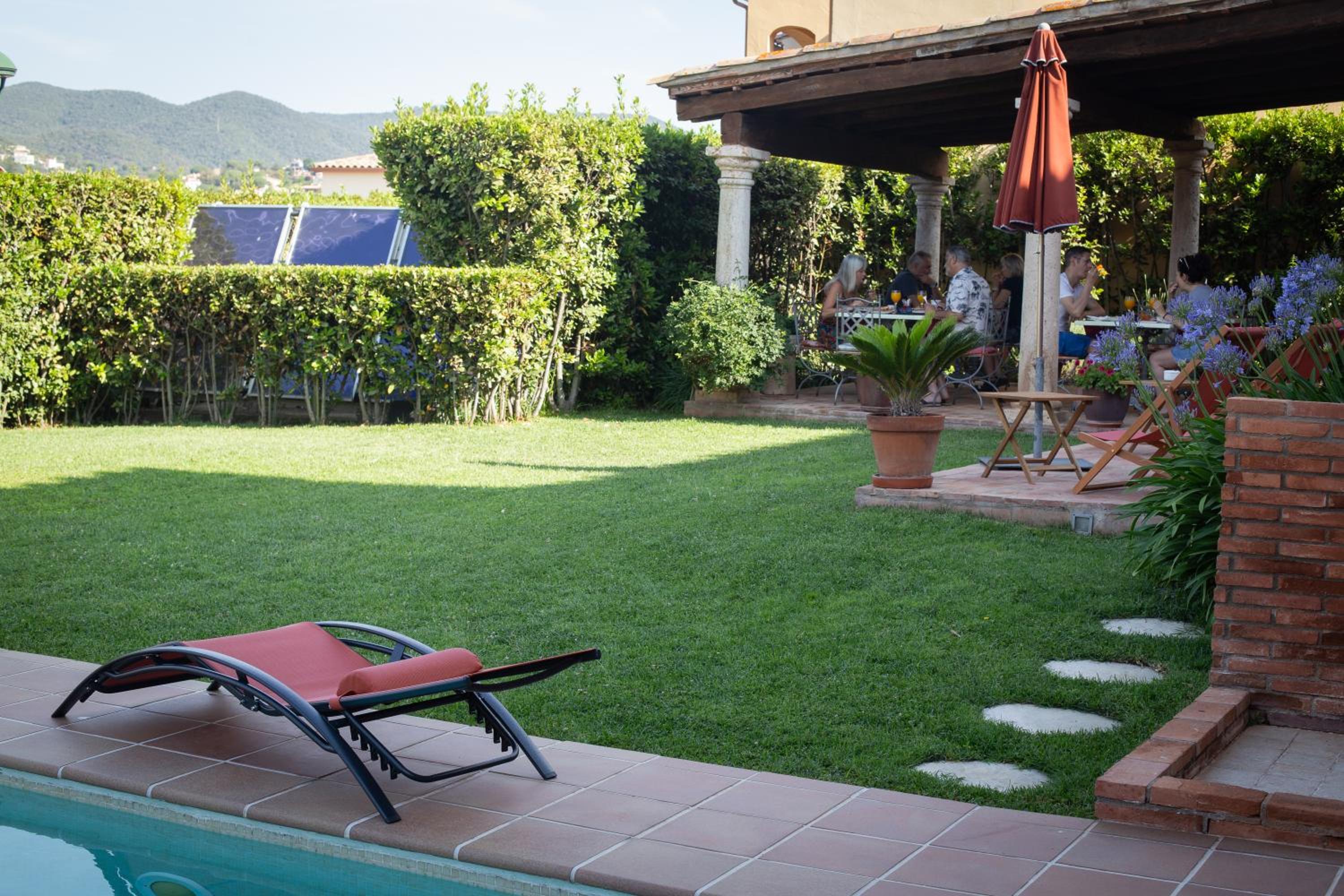Serene Oasis: Relax by the outdoor pool surrounded by lush gardens, just a short drive away from the picturesque Sant Antoni de Calonge Beach.