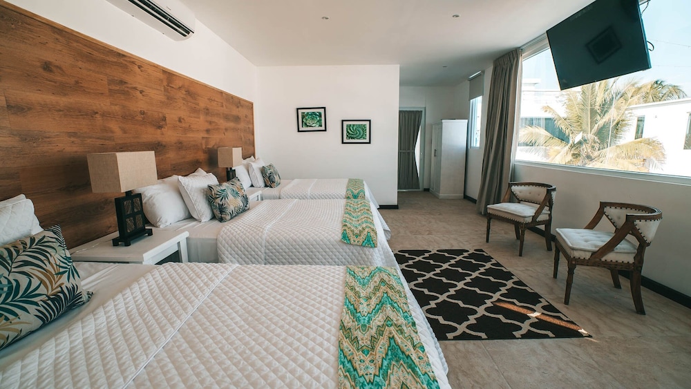 Lindo hotel. El hotel es pequeño (20 habitaciones) y muy moderno. La piscina espectacular y grande dando espacio a las familias que visitabamos. El personal uso mascarilla en todo momento y eran muy servicial. La comida deliciosa aunque el menu es limitado y a veces un poco tardado. La playa preciosa disfrutamos los amaneceres y atardeceres.