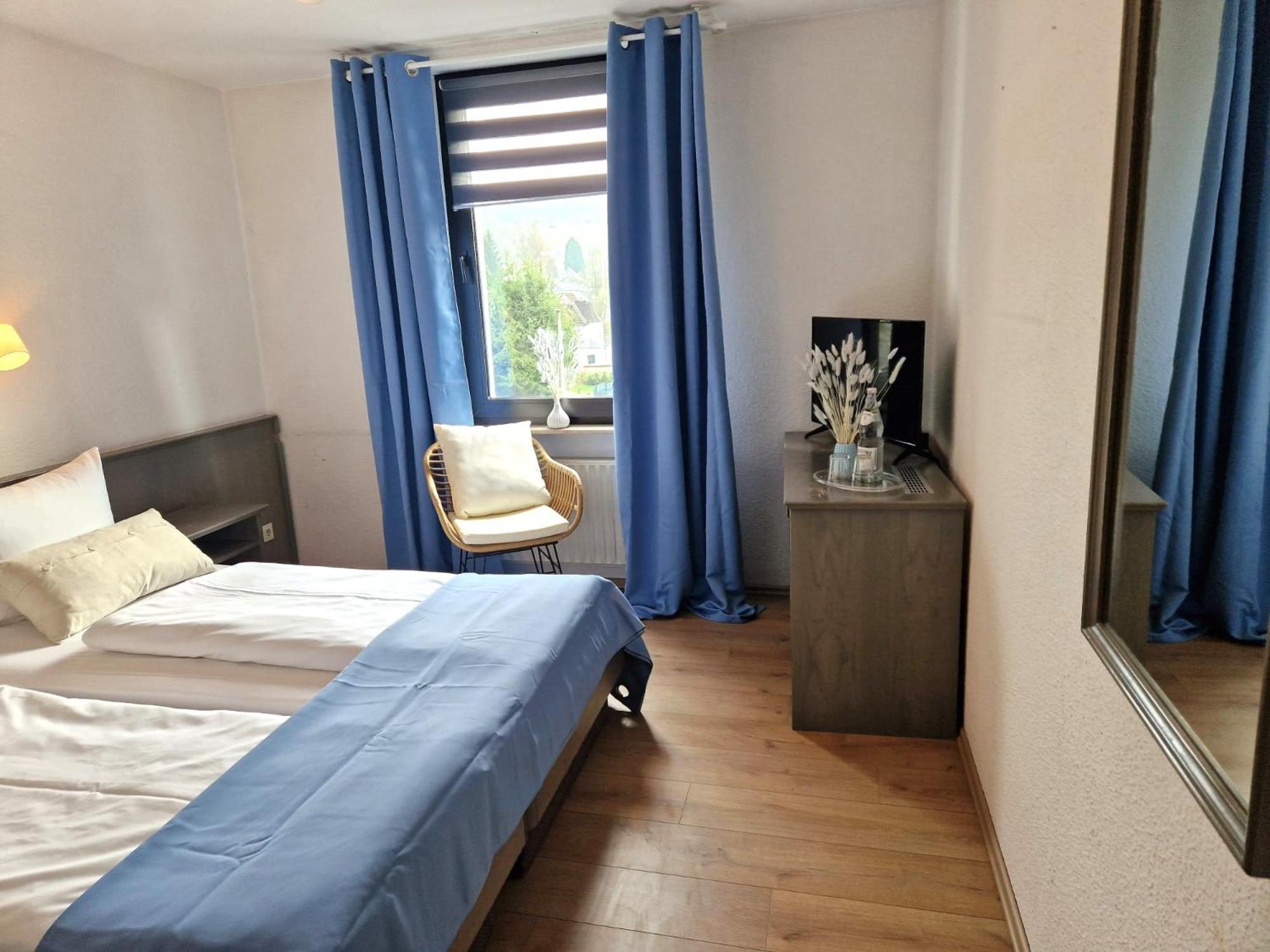 w jednym pokoju nie było żadnej szafy, w drugim nie było szafek nocnych . w łazience był tylko skrawek papieru toaletowego. Śniadanie na warunki niemieckie bardzo skromne