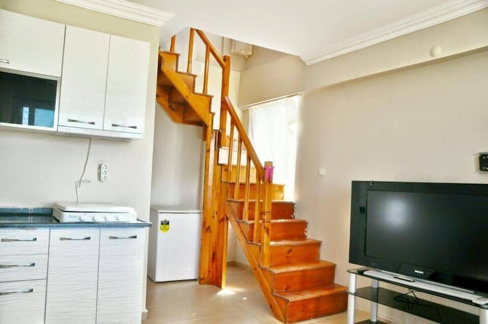 Olumlu: Odada yatak, çekyat, mutfak tezgahı, ocak ve mutfak dolapları mevcut.Mutfak eşyaları mevcut.Yola yakın konumda ve denize yürüyüş ile 3-5 dk mesafede.