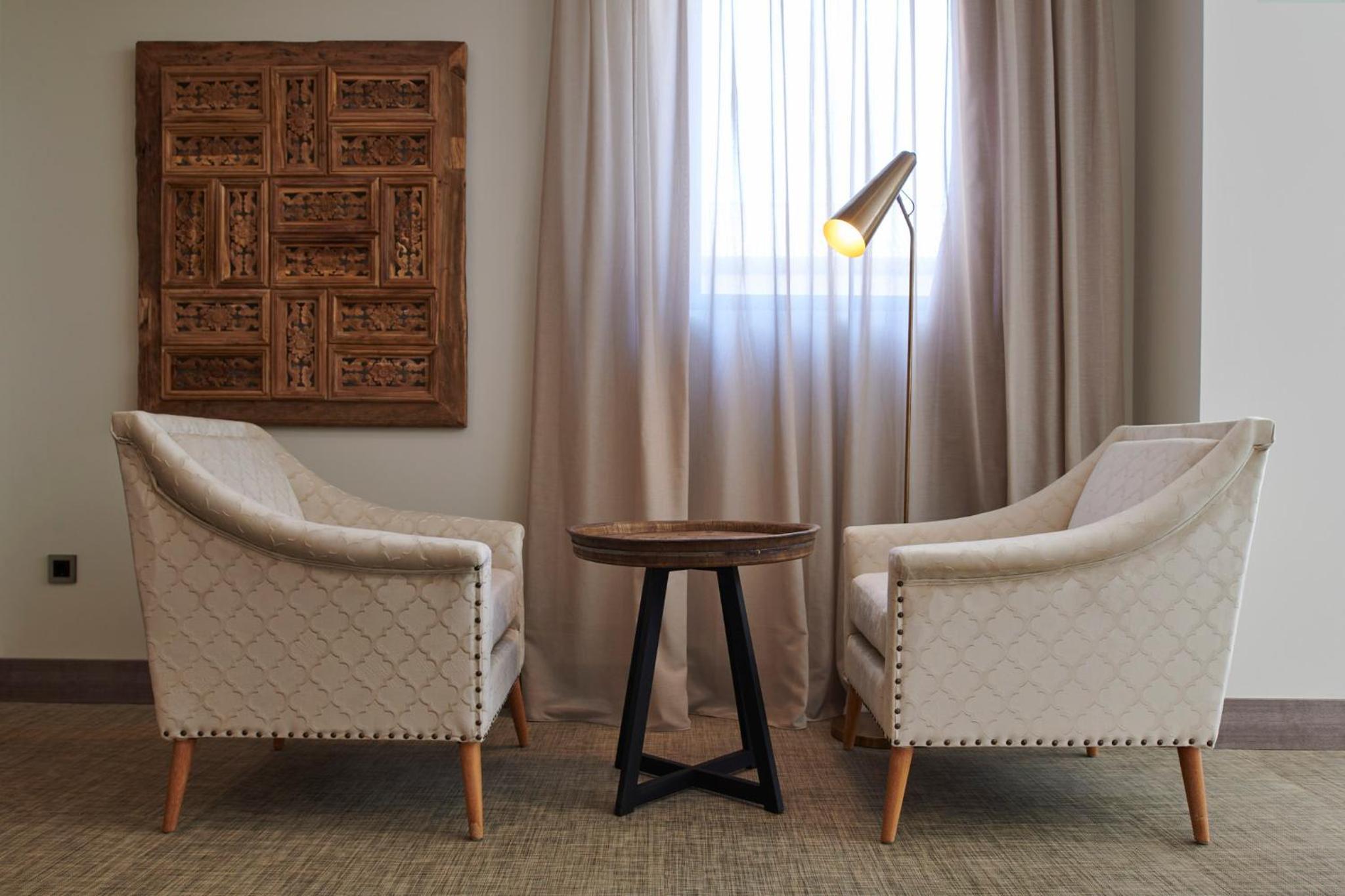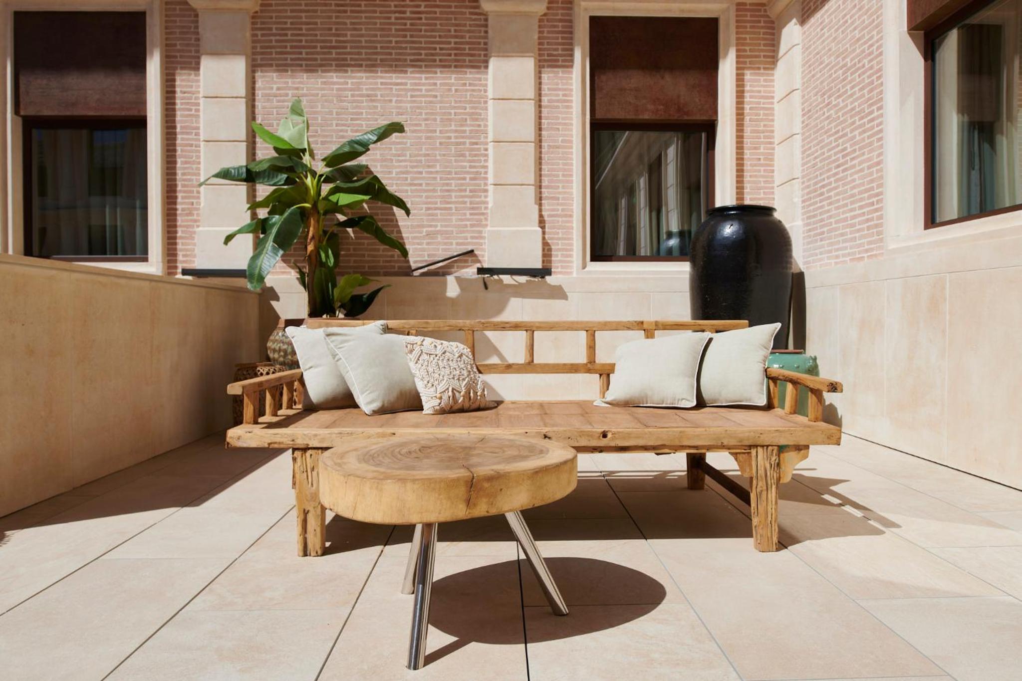 El hotel muy bonito, con una decoración preciosa. Desayunamos en el bar del hotel y nos pusieron una tostada de jamón ibérico espectacular.