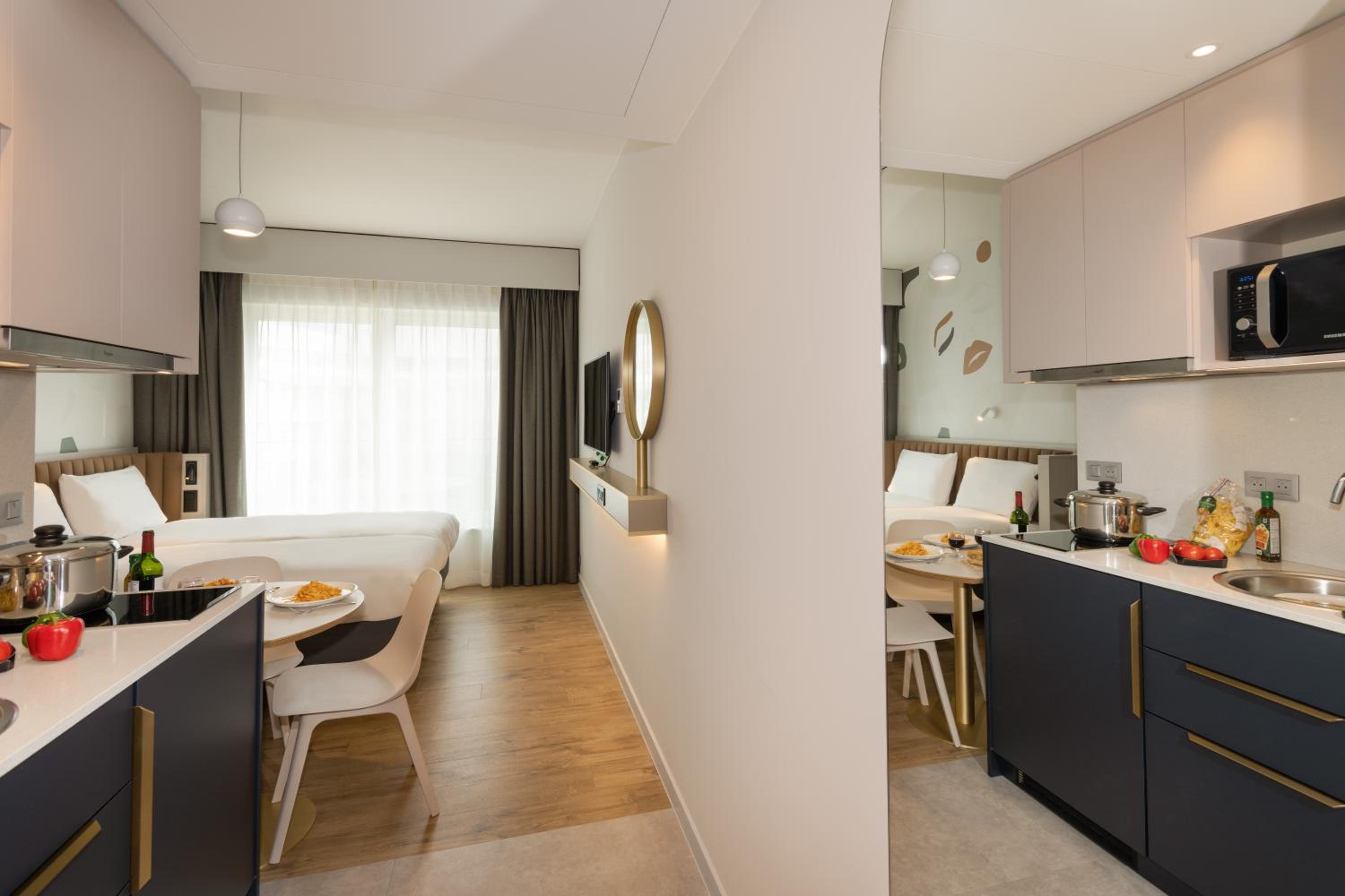 The air-conditioned units at the aparthotel are well-equipped with essential amenities such as a coffee machine, microwave, and flat-screen TV. Guests can also benefit from full-day security, luggage storage, and a buffet or continental breakfast during their stay.