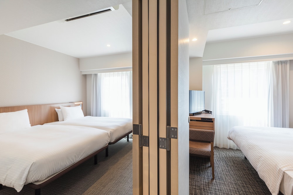Hotel is close to Yokohama Station and YCAT, which we utilized from Narita to Yokohama. Just had to figure out the route through the maze of the station area. Then it was an easy walk to the hotel through the NE corner of the station. Friendly staff checked us into our 2-room room on the 14th floor. Rooms were small with hardly enough space to have our luggage out and opened. Good thing was with this 2-room set up, son was able to have his own room and his own bathroom, a big plus. But rooms were definitely tight. We did hear the trains but it was not loud enough to bother us. Small bathroom but worked. Location of the hotel can’t be beat! Easy walk to train and bus stations. JoinUs food court had everything we needed. On check out, staff was helpful and courteous in calling to get us a van to take us to Daikoku Cruise Terminal, totaling about $50USD. Good stay. Just wish the rooms were bigger!