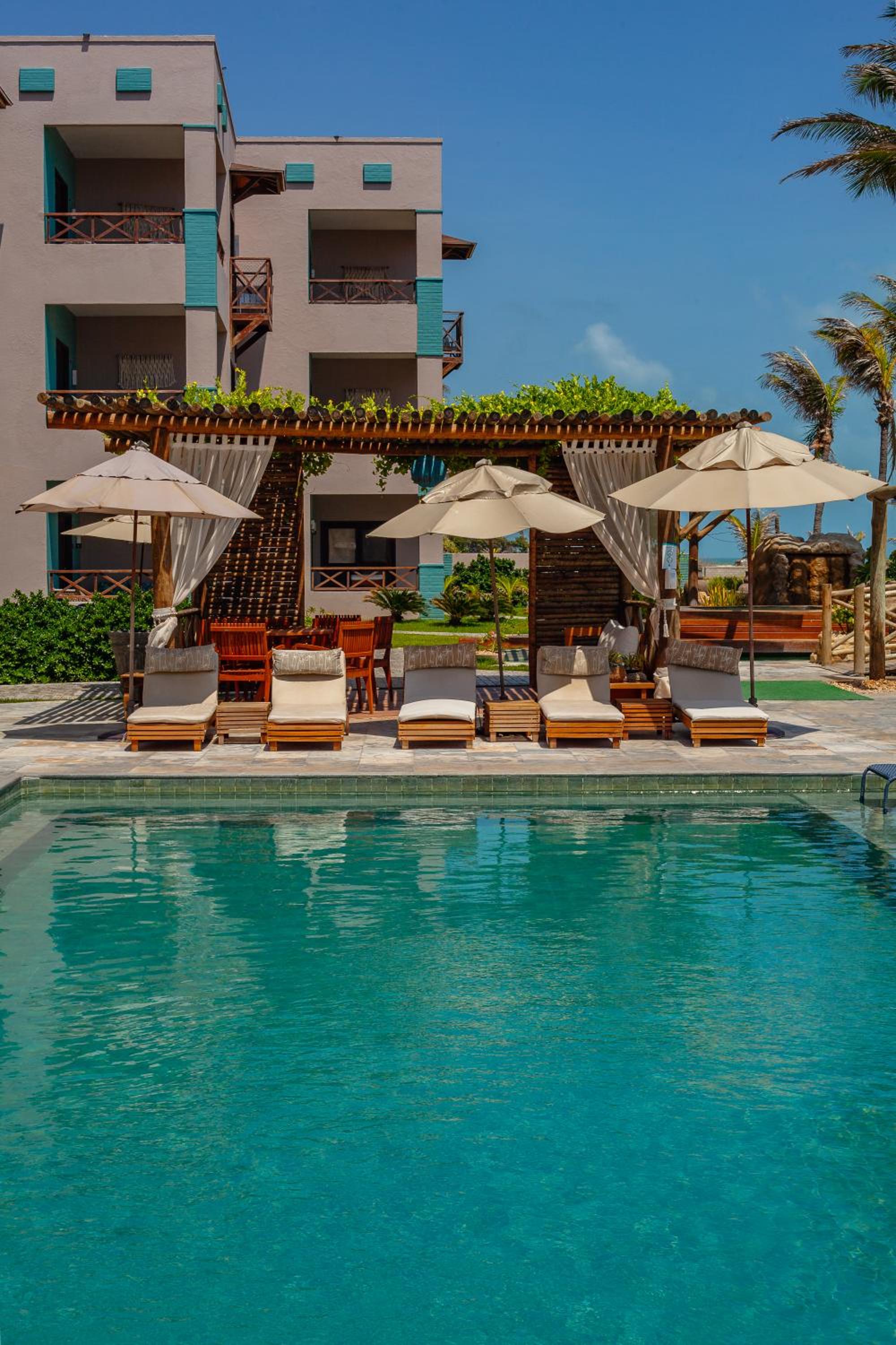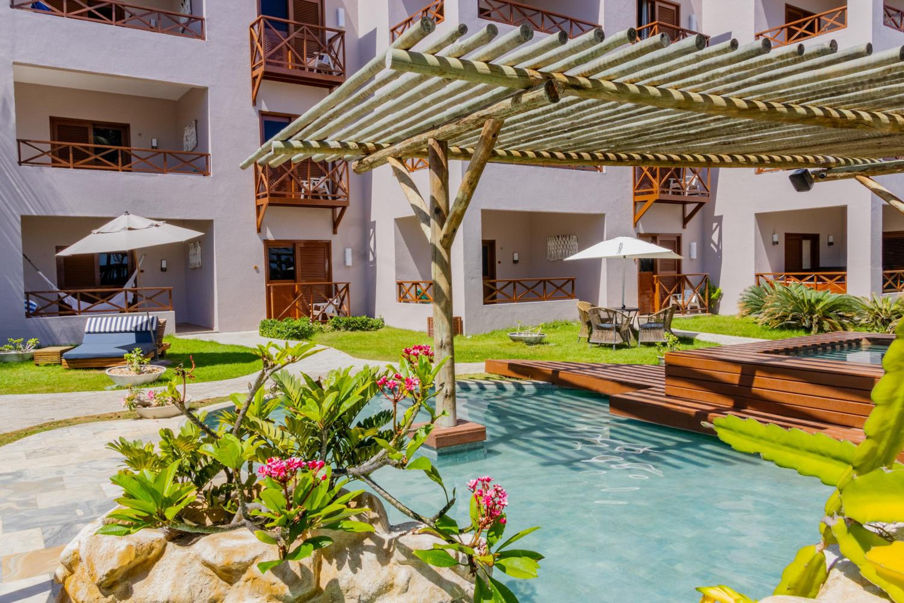 a área externa do hotel é bem bonita (pisicna, bar da praia, jacuzzi, redes) e o serviços da piscina e restaurante são maravilhosos.