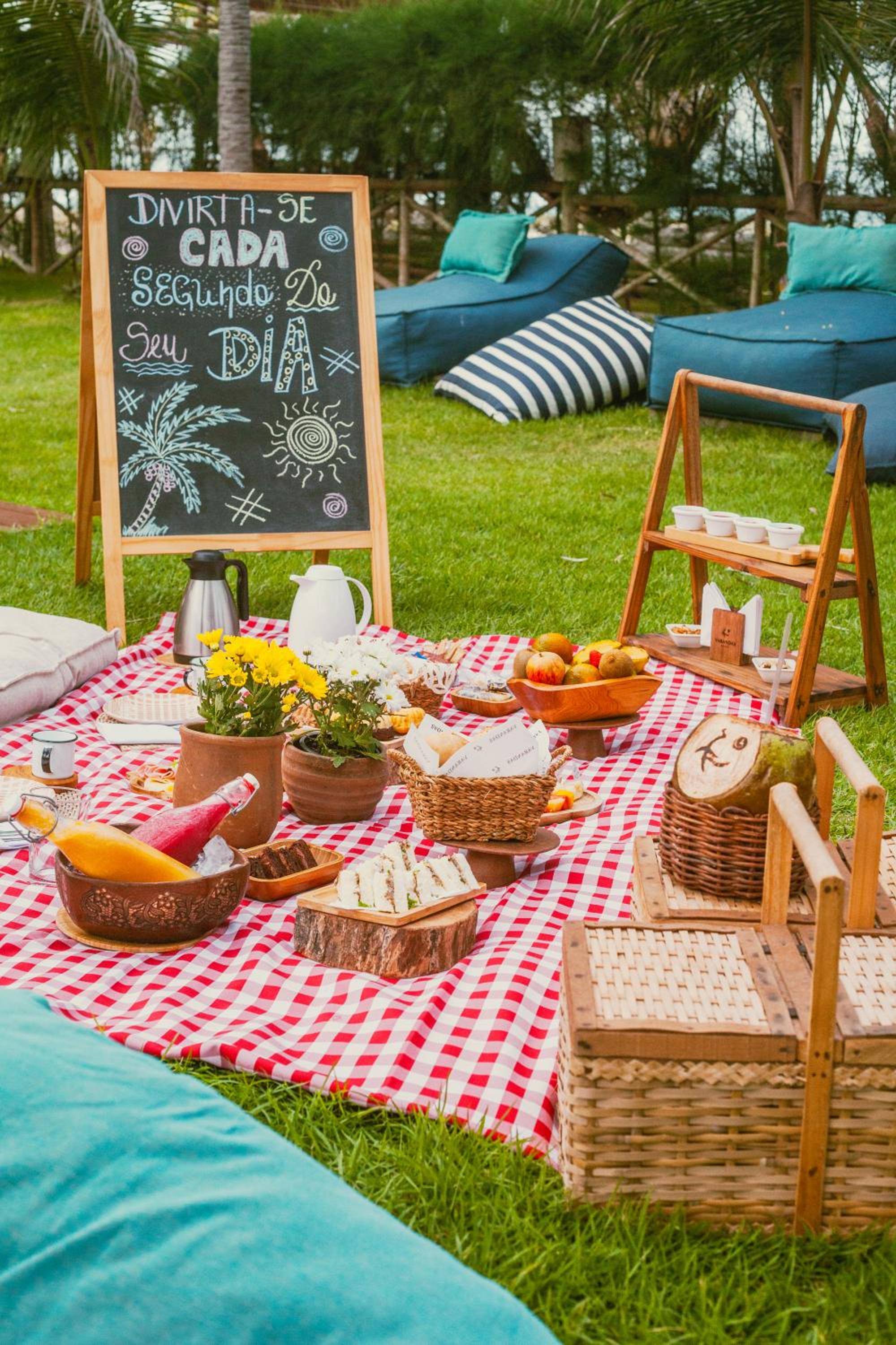A área externa da praia também parecia mal cuidada. Os sofás estavam sujos e com aspecto de falta de manutenção, o que passa uma sensação de abandono do espaço.