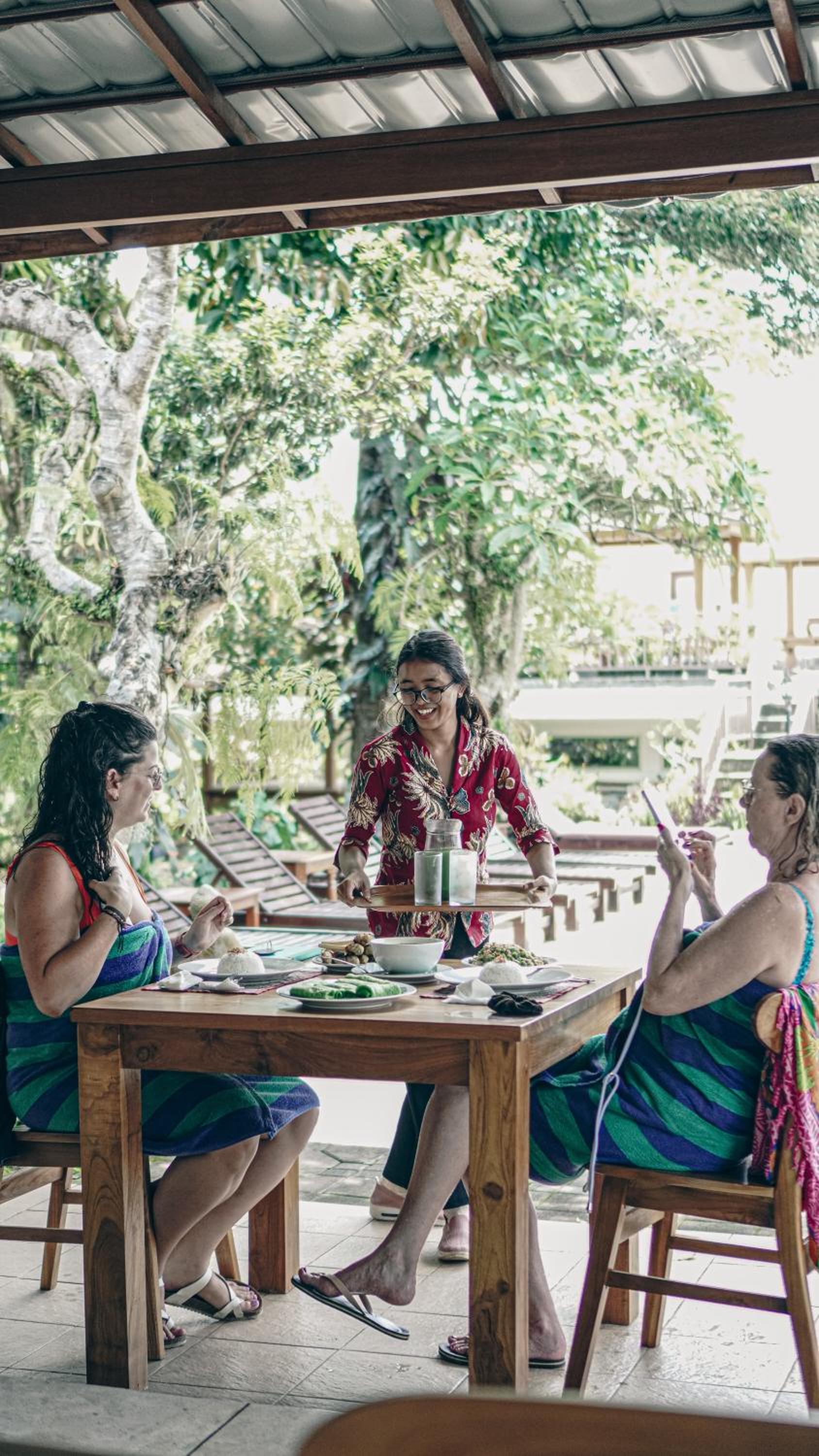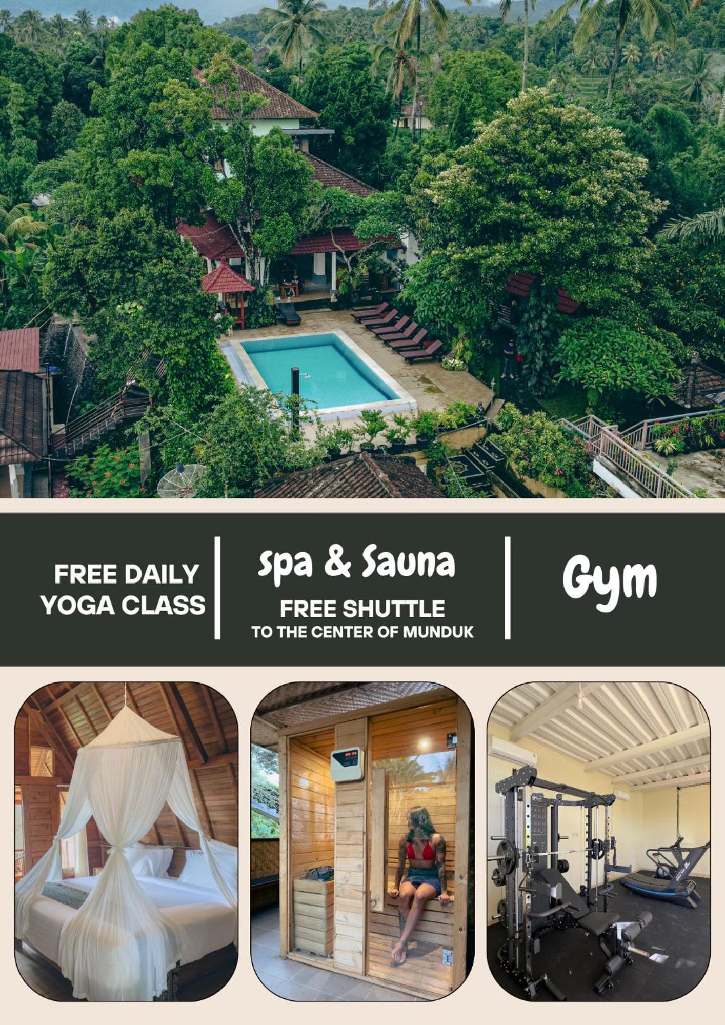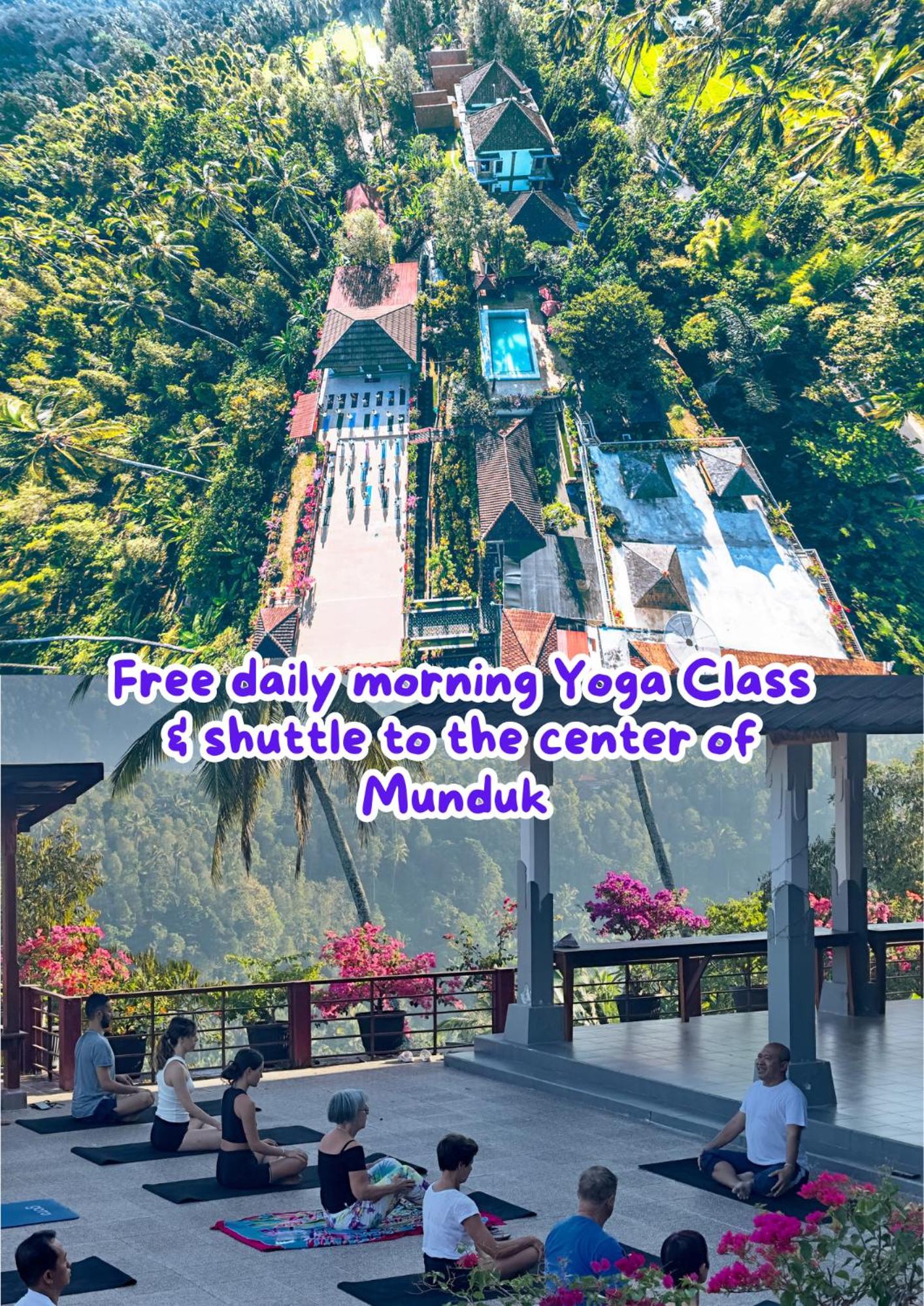 Estás en medio de la naturaleza y es un lugar tranquilo. Te dan opción a yoga y transfer a munduk para ver cascadas.