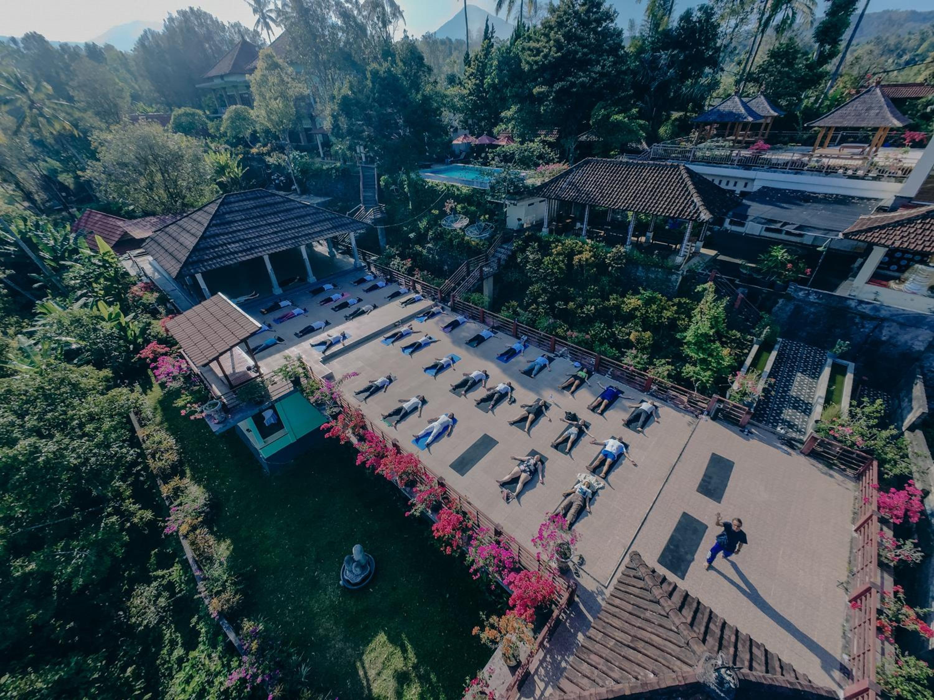 Herrliche Lage mit Blick in die Berge. Außerdem gibt es einen schönen großen Pool und kostenlose Yoga Stunden.