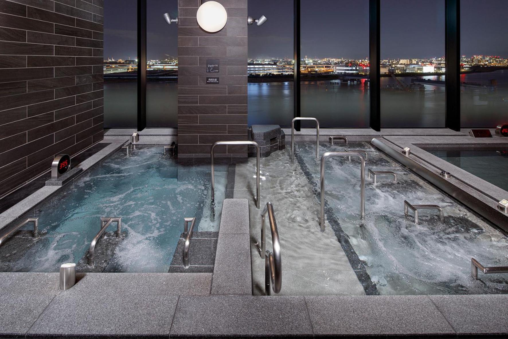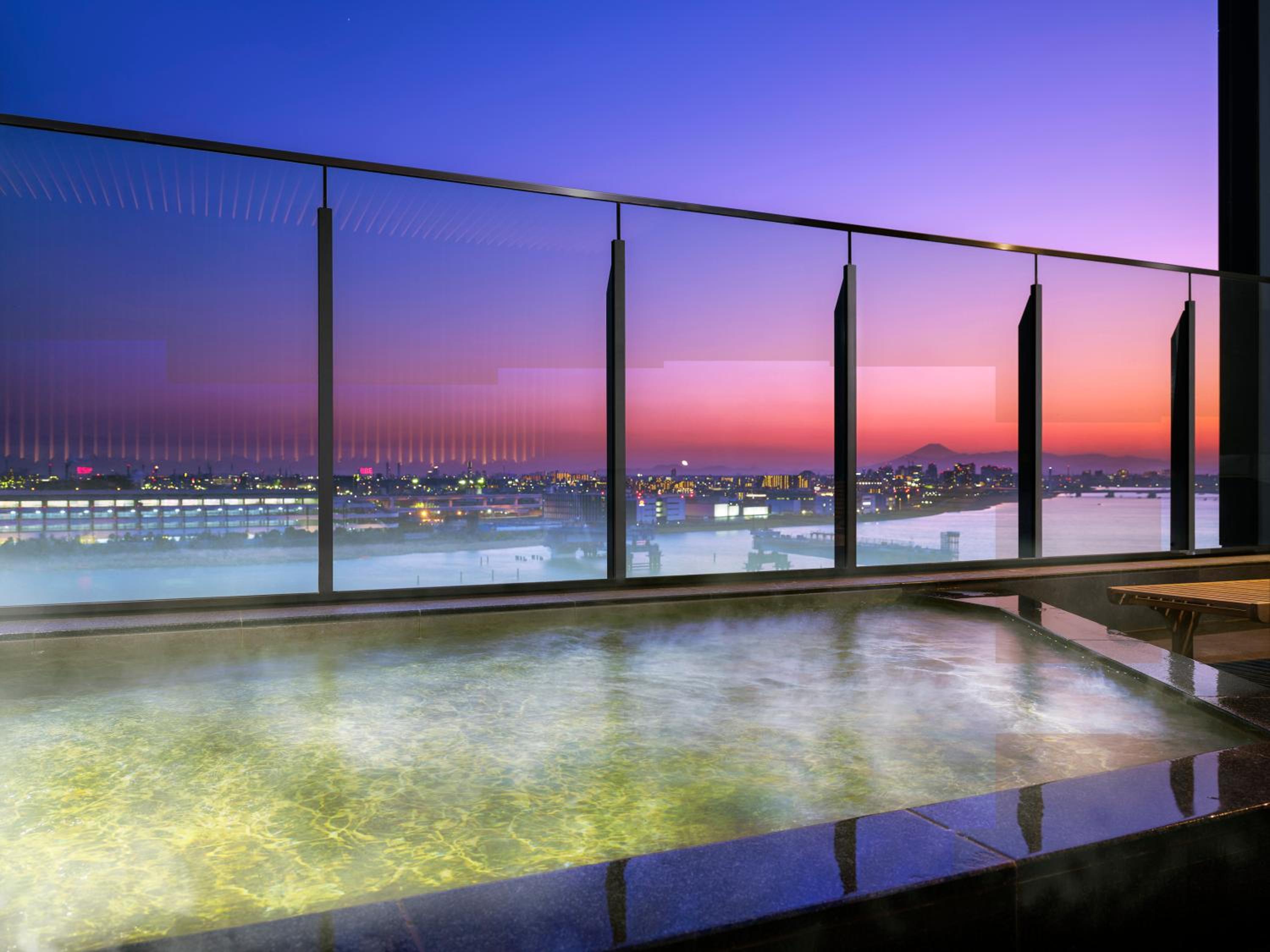 Villa Fontaine Premier Haneda Airport offers a range of luxurious amenities including a fitness center, bar, and stunning views of the river. Guests can also enjoy an open-air hot spring bath, stone spa, and sauna for the ultimate relaxation experience.