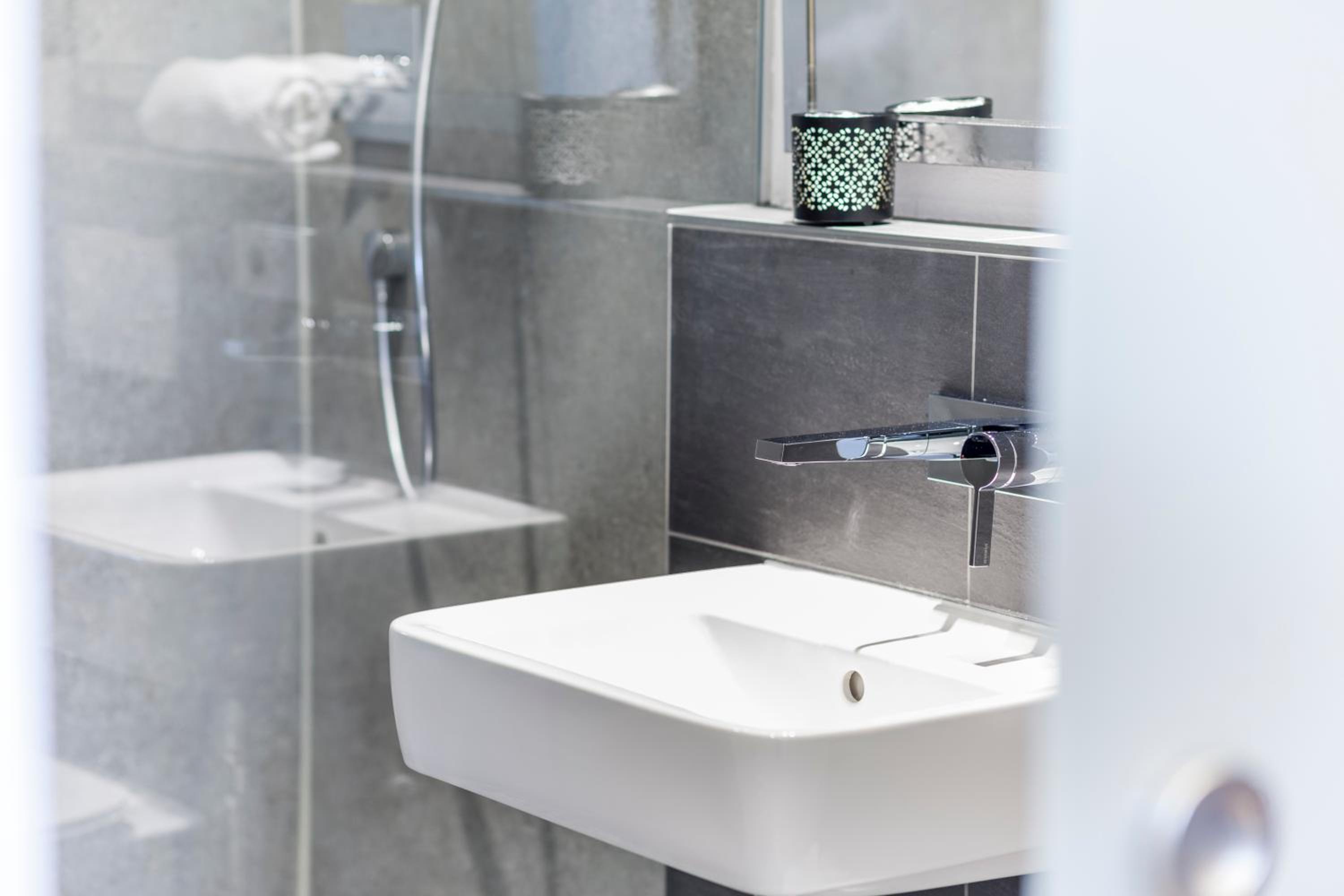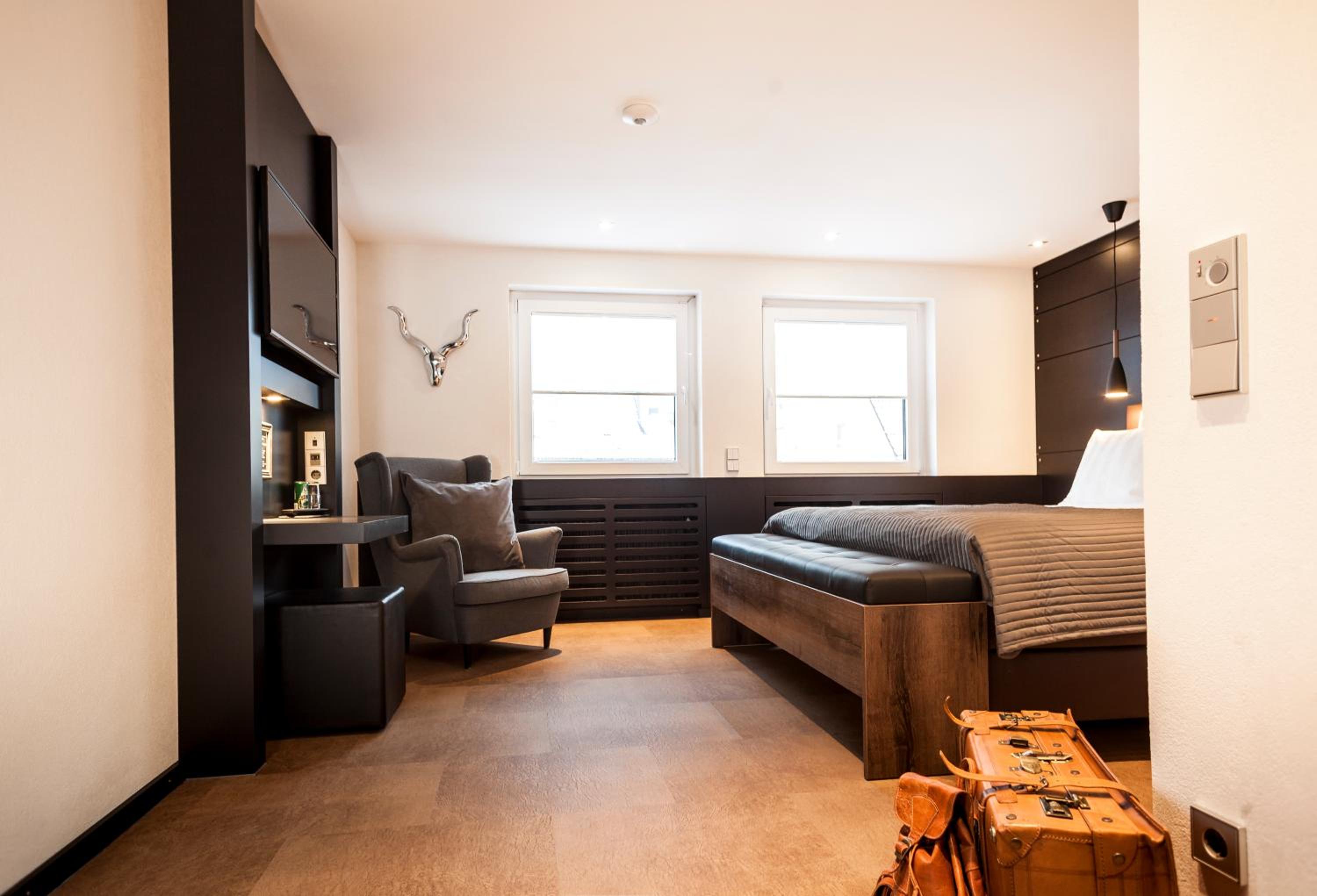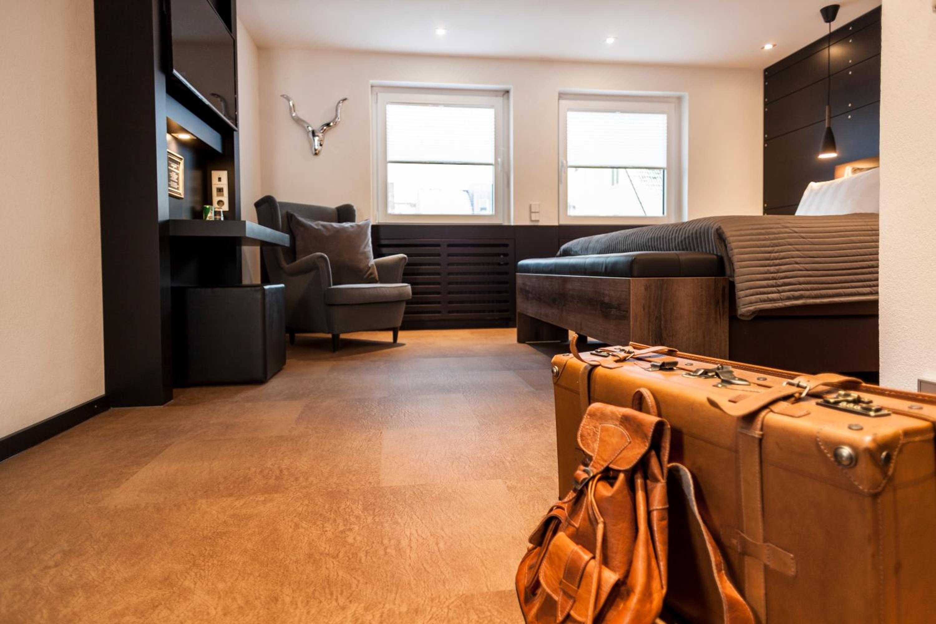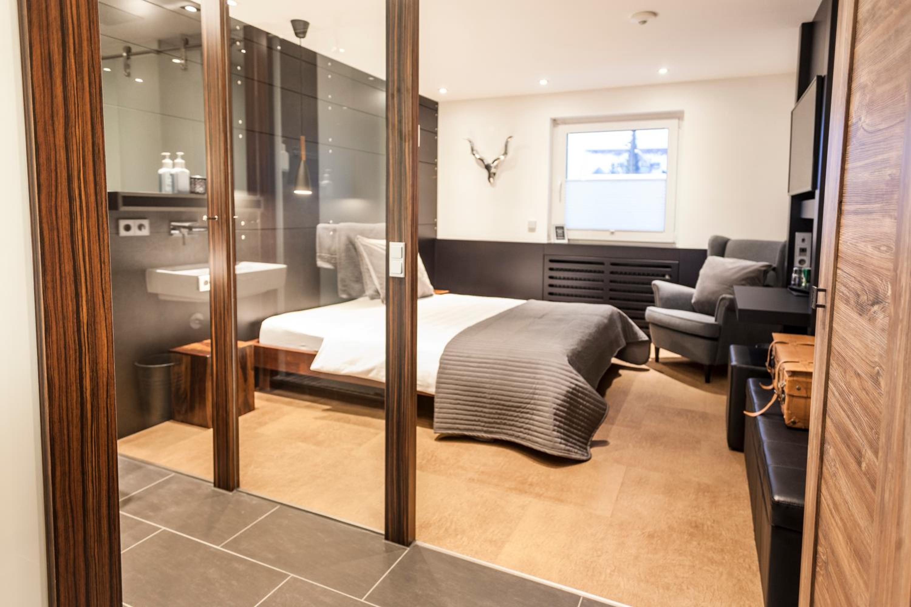 Schlüssel wurde deponiert,schön gestaltetes Zimmer mit Leder Boden,tolle Dusche mit schönem Fernseher