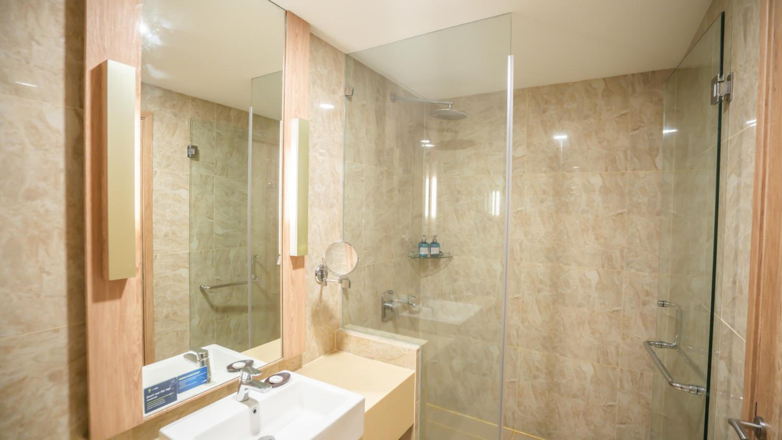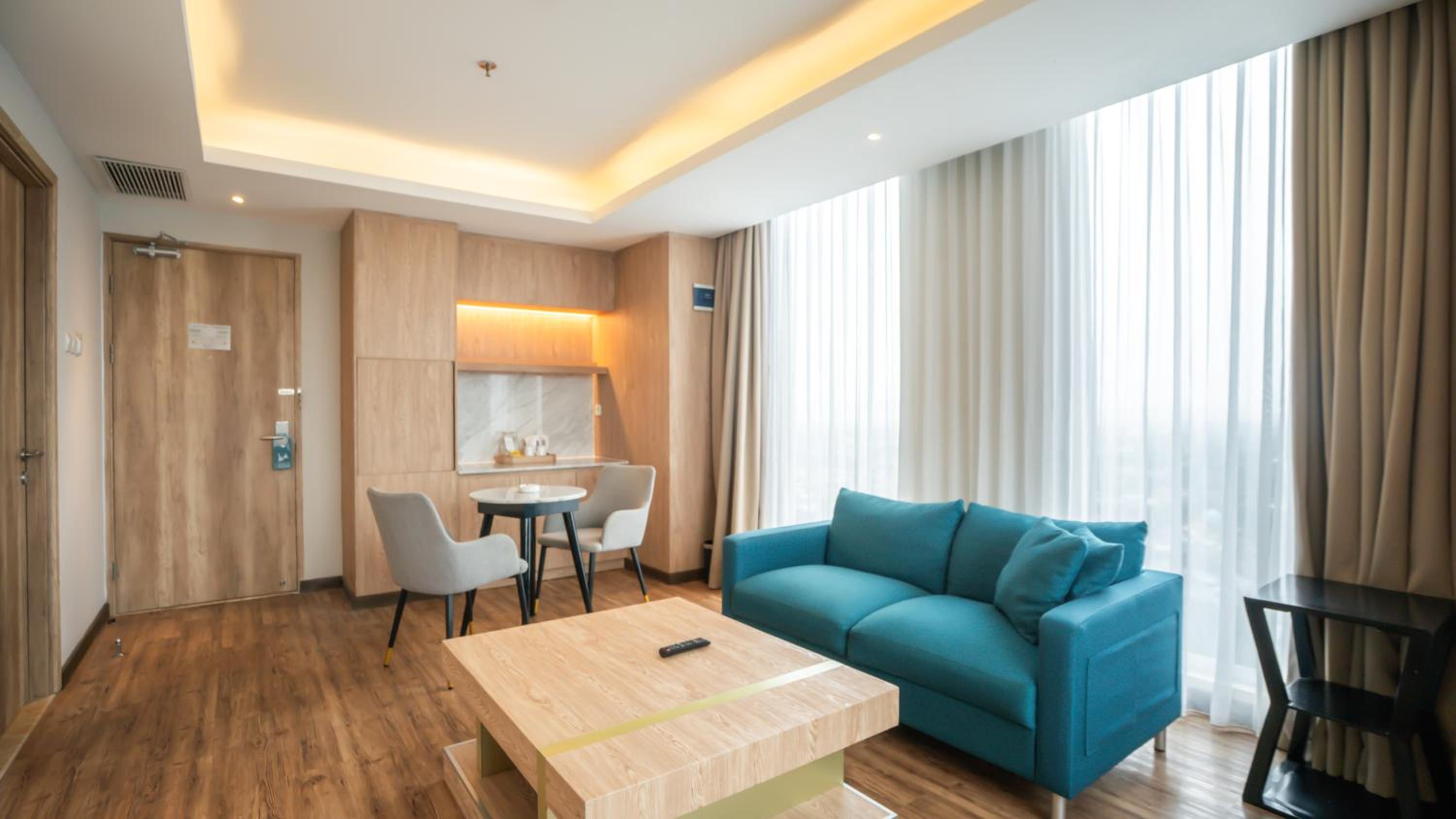 The room was super with floor to ceiling window with a great view of the city and the distant mountains. The rooftop buffet with live music had lovely food at a fair price and we had a great night.