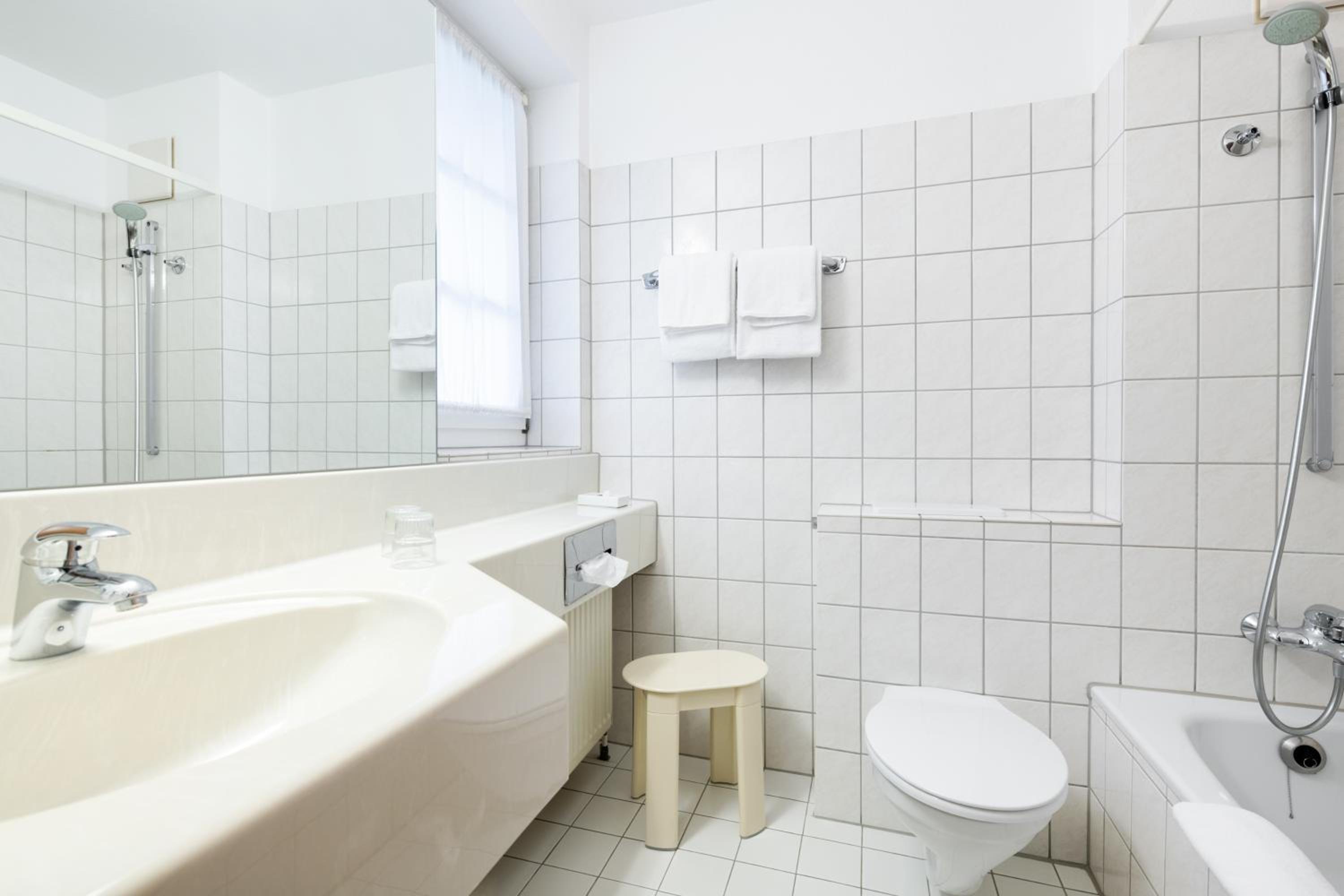 Celý hotel působil dosti opotřebovaným dojmem. Všechno je situováno do hodně retro stylu, který věřím, že mohl hosty oslovit před dvaceti lety. Pokoje jsou i ve čtvrtém patře, ovšem výtah jezdí jen do třetího. V některých pokojích byl cítit nepříjemný zápach. Jeden pokoj jsme museli vyměnit, protože zde bylo špinavé prostěradlo a chyběly ručníky. Záchodové prkénko bylo dost opotřebované a zažloutlé. Sprchový kout velmi malý.