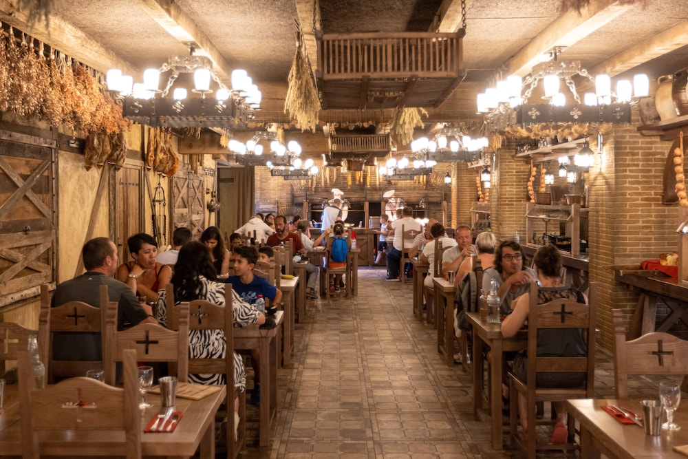 Absolutely fantastic place. Everywhere is themed beyond anything I’ve seen anywhere else in the world. Kids loves their own space with bunk beds. We ate in the ambassadors buffet restaurant. Might not be suitable if you have fussy children as it was really gourmet 17th century food but was all excellent quality and the desserts were amazing. Breakfast was continental and everything again was high quality. Loads of fruit, pastries, cheeses.