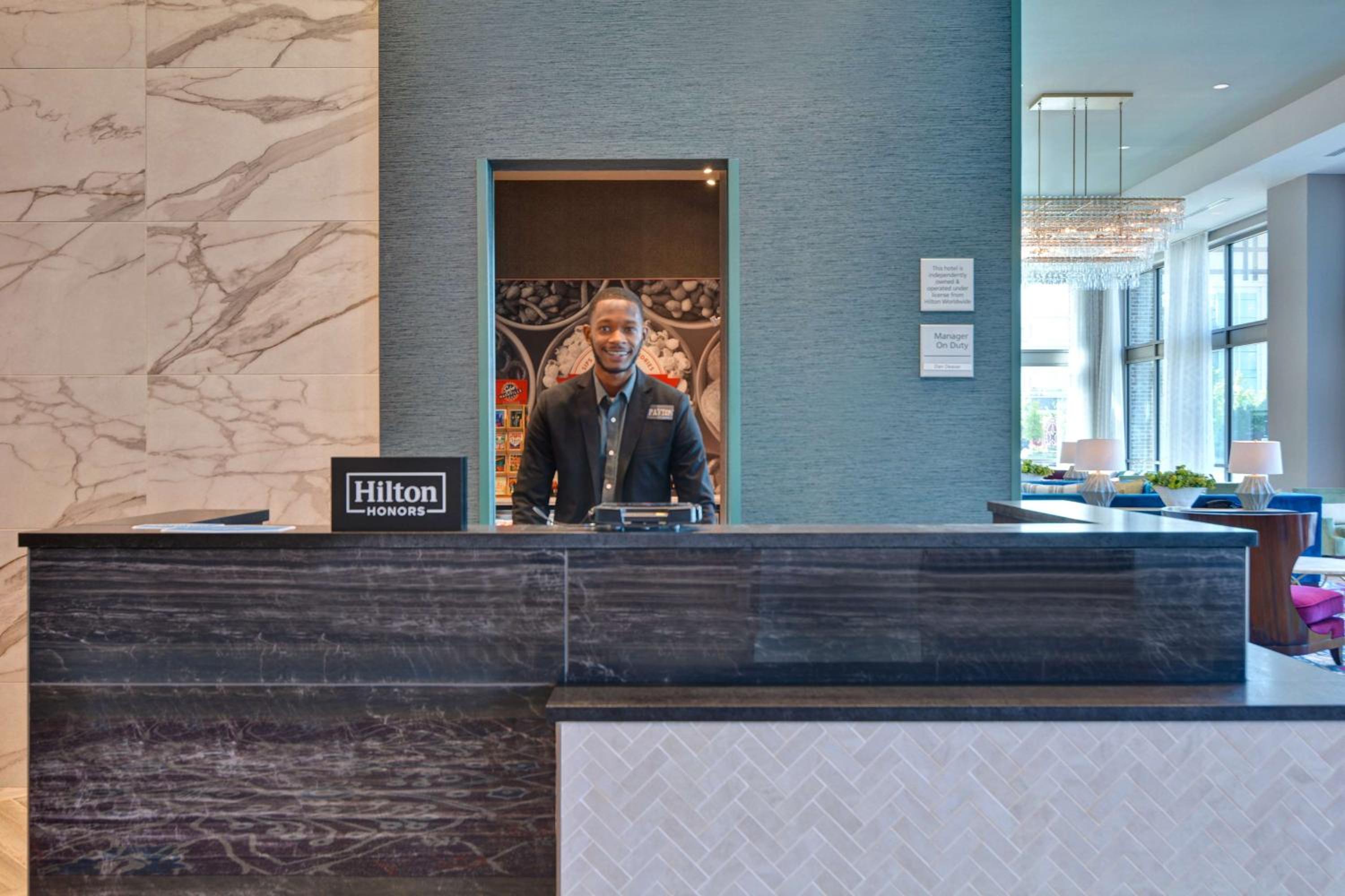 We had a very pleasant stay at this hotel. We were in town for a wedding, and there was a room block. We were greeted by a very friendly man at the front desk, and we checked in without issue. The room was clean, spacious, and had everything we needed for an enjoyable stay. As part of the wedding celebration, there was a get together at the rooftop bar. The bartender stayed open late for us, and took excellent care of every guest. I recommend checking this out! The breakfast was out in the open in the lobby, and was pretty standard for a hotel breakfast. The location is fantastic and is just a quick Uber or Lyft ride away from a ton of great stuff.