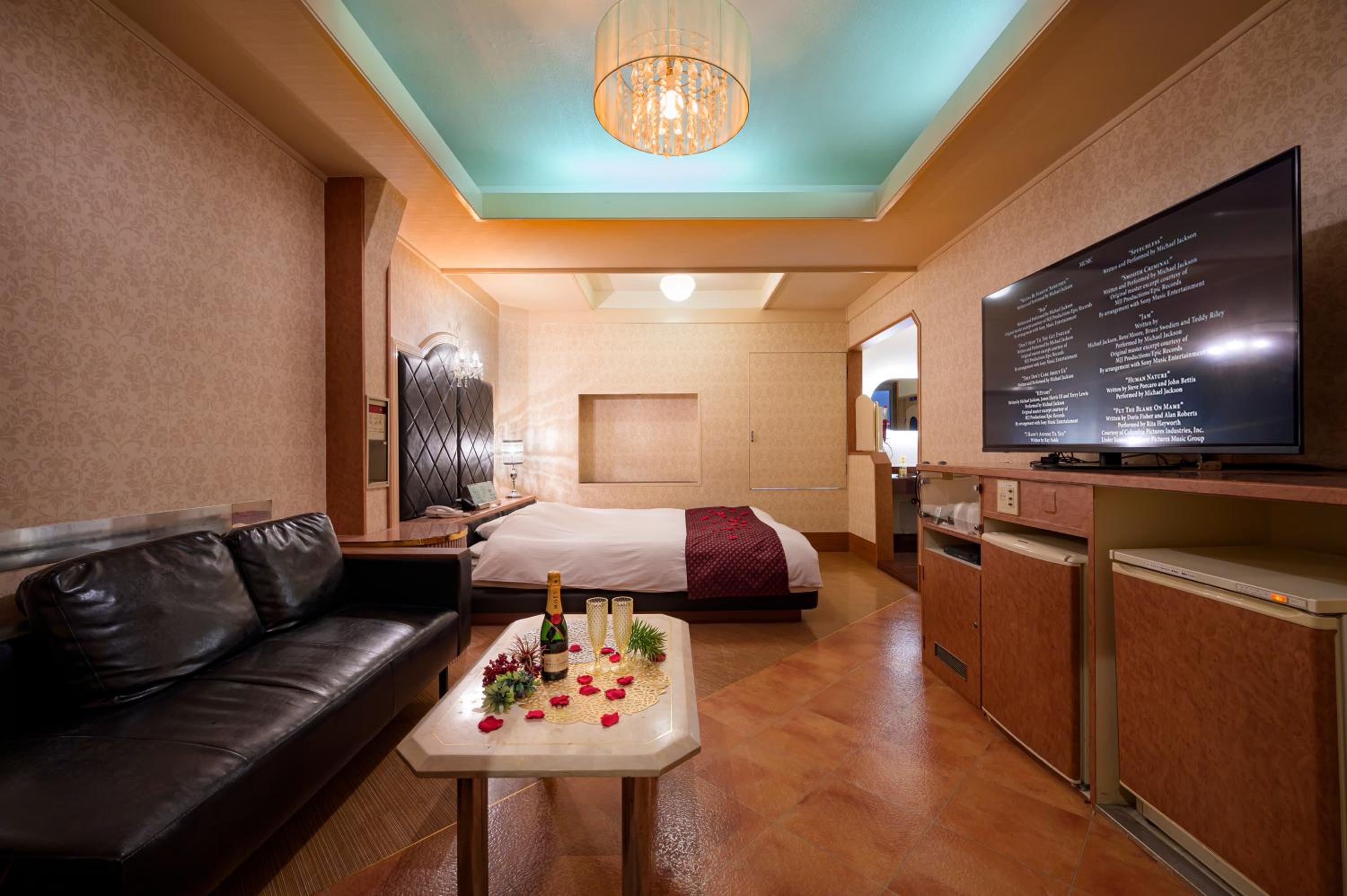 HOTEL MOBILIA (Adult Only) in Tsurugashima offers a range of luxurious amenities including a sauna, karaoke, and convenient room service for a truly indulgent stay.