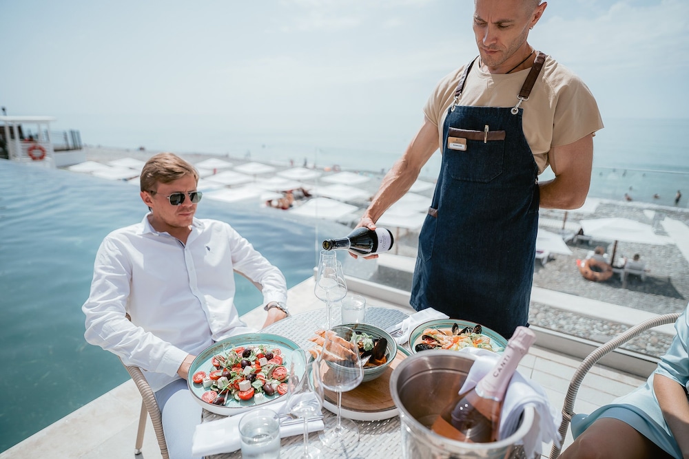 Enjoy a day by the private beach or take a refreshing dip in the outdoor pool. The perfect way to relax and unwind during your stay at Luchezarniy Resort in Sochi.