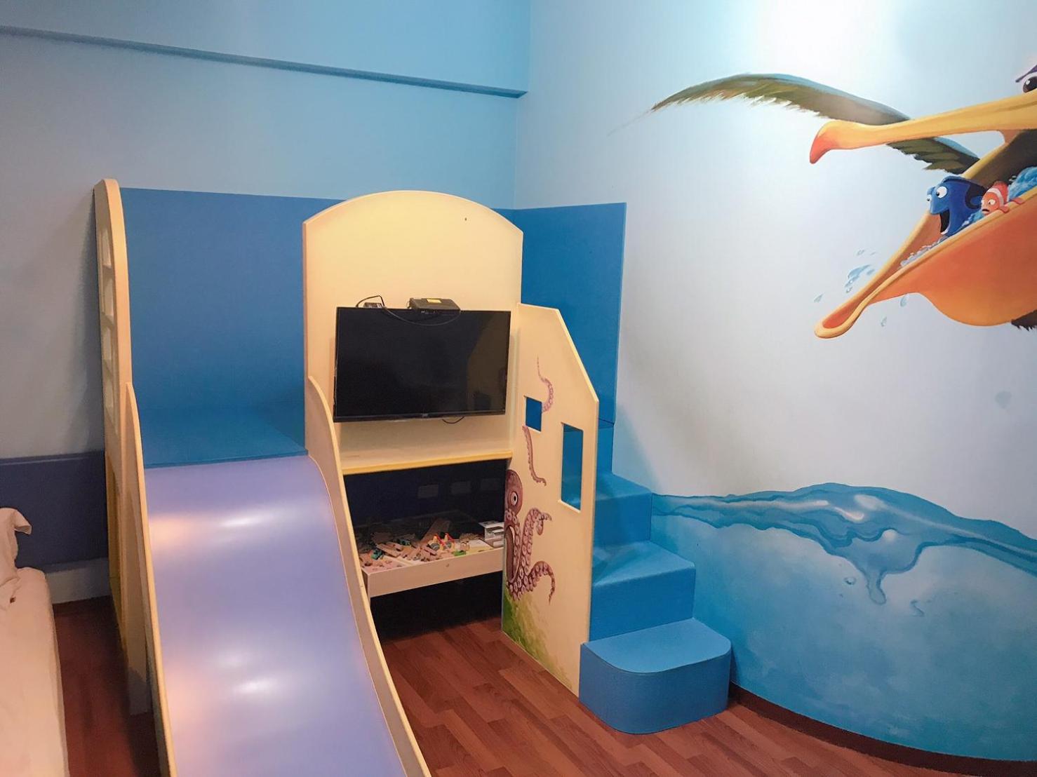 很多玩具小孩說以後來台南都要來住!整體很乾淨床也好睡,房間有留滑梯一睡醒就開溜很方便,一樓還有很多玩具可以玩非常適合親子旅遊推!
