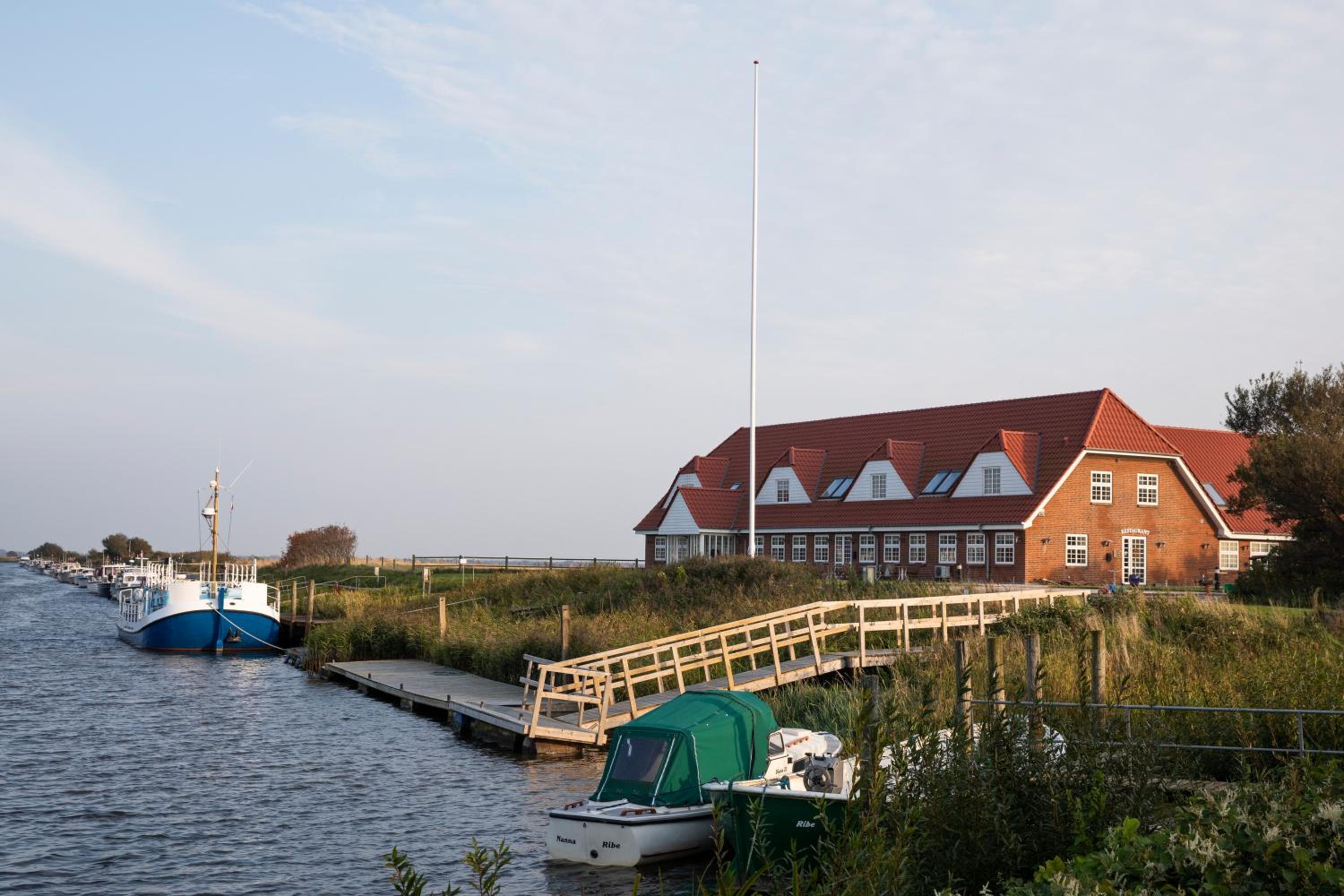 Alles, ligging aan een beperkt toegankelijke weg en havengeul, ideale locatie om je vakantie te starten. Je ziet de torens van Ribe. Vriendelijk personeel, lekker eten, aangenaam terras.