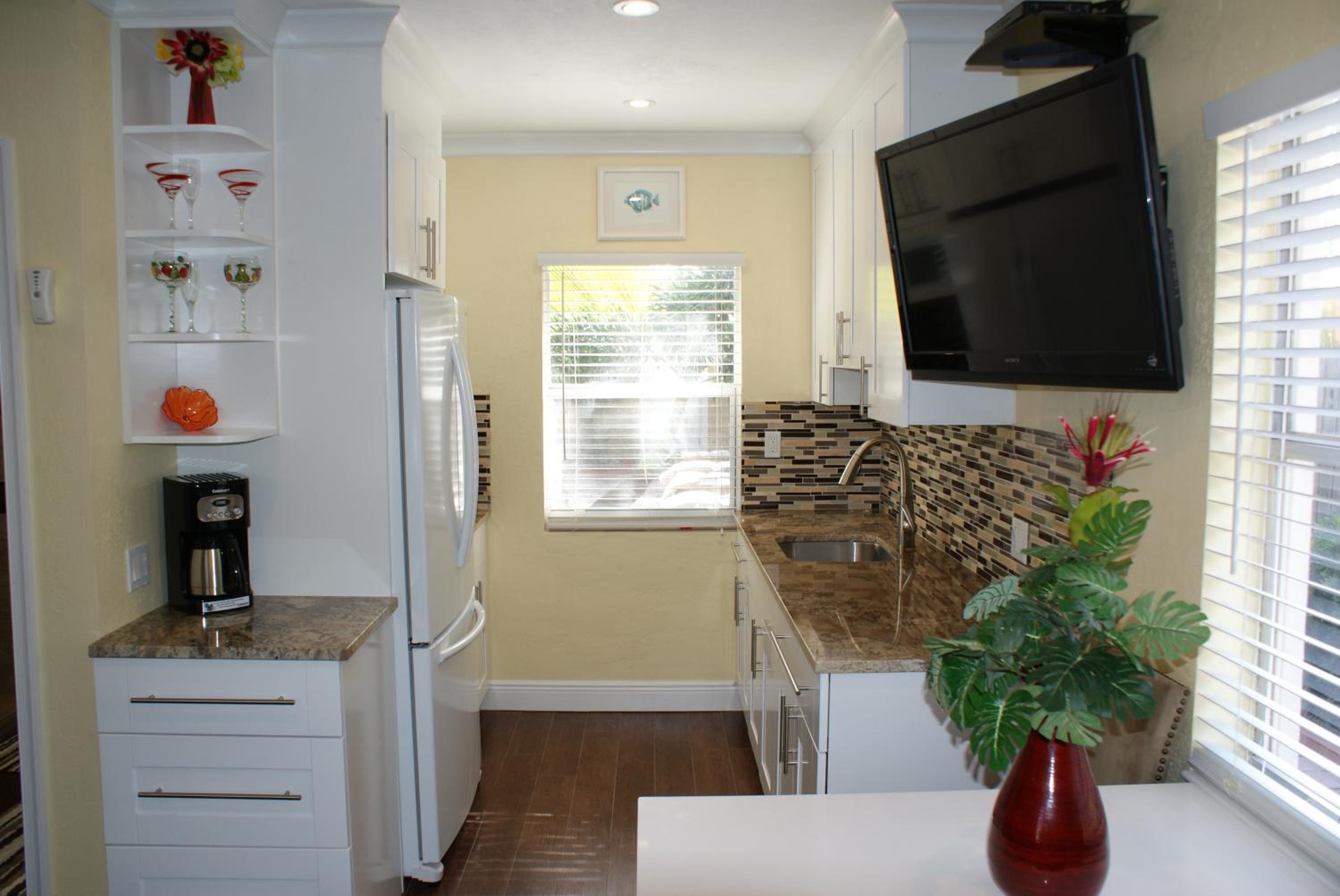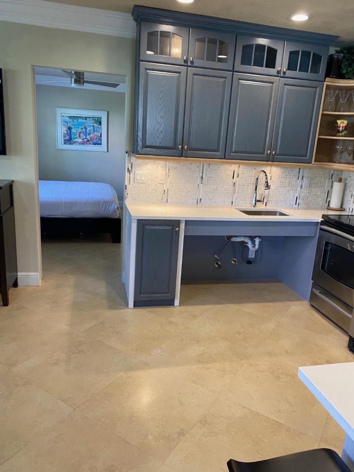 The valve in the kitchen sink leaks. The restroom is kinda tight. Not a lot of room to walk around. No overhead lighting above the bed