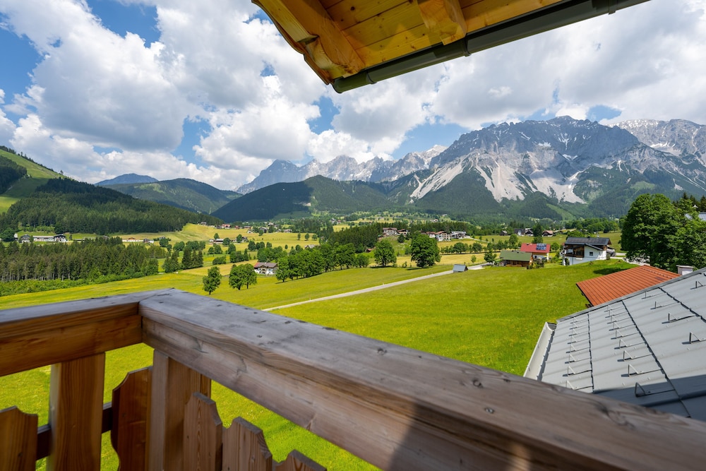 We stayed in the Penthouse which had beautiful mountain views from the living room and bedroom balconies. The apartment was nicely designed, well-equipped, and very comfortable and quiet. Our host was friendly and informative and helped us locate great hiking trails (and anything else we needed). We would definitely recommend Dachsteinperle to friends and family.