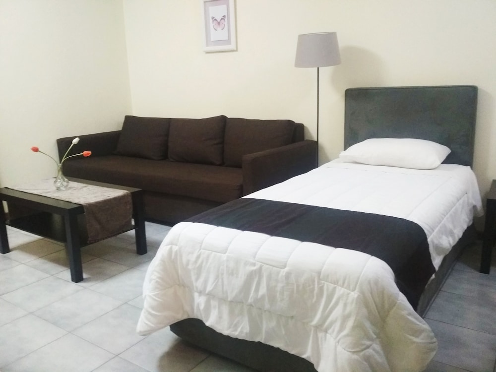 キッチン付きの部屋で、アパートホテルのようでした。浴室にはバスタブが付いていました。行きのバスが遅れて深夜の到着になってしまいましたが、チェックインできました。男性のフロントデスクの方たちはフレンドリーで親切でした。