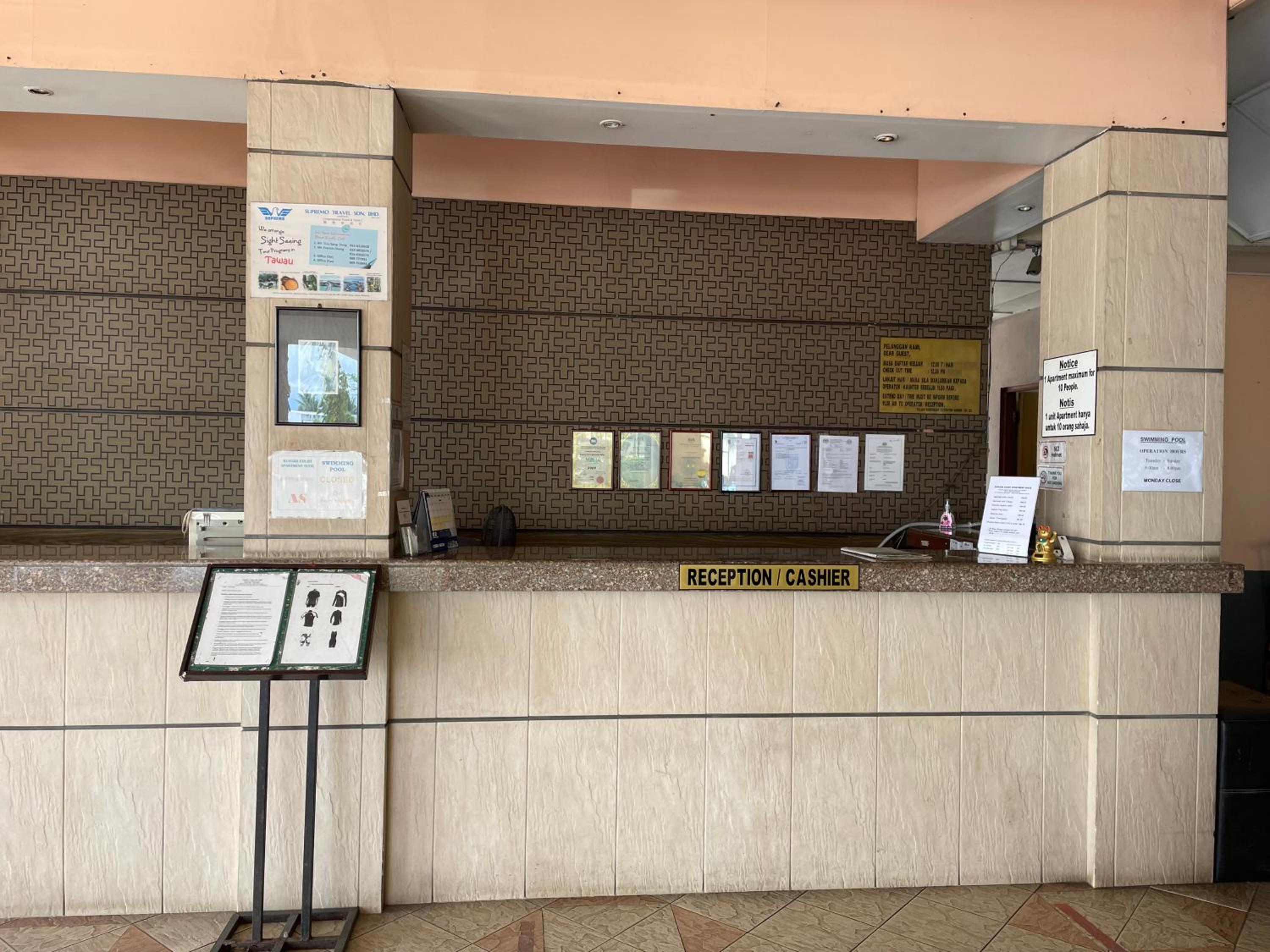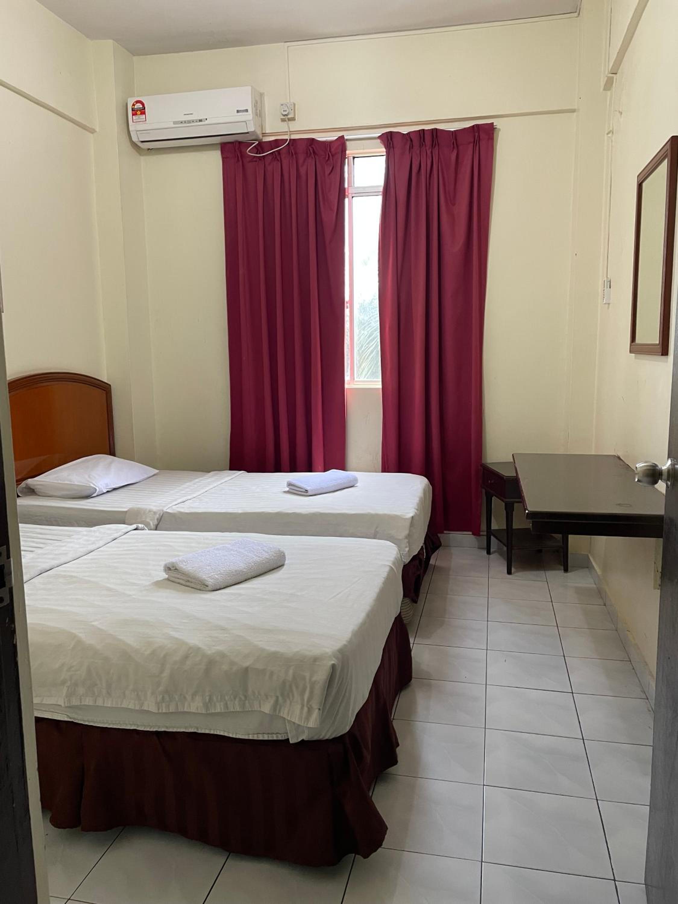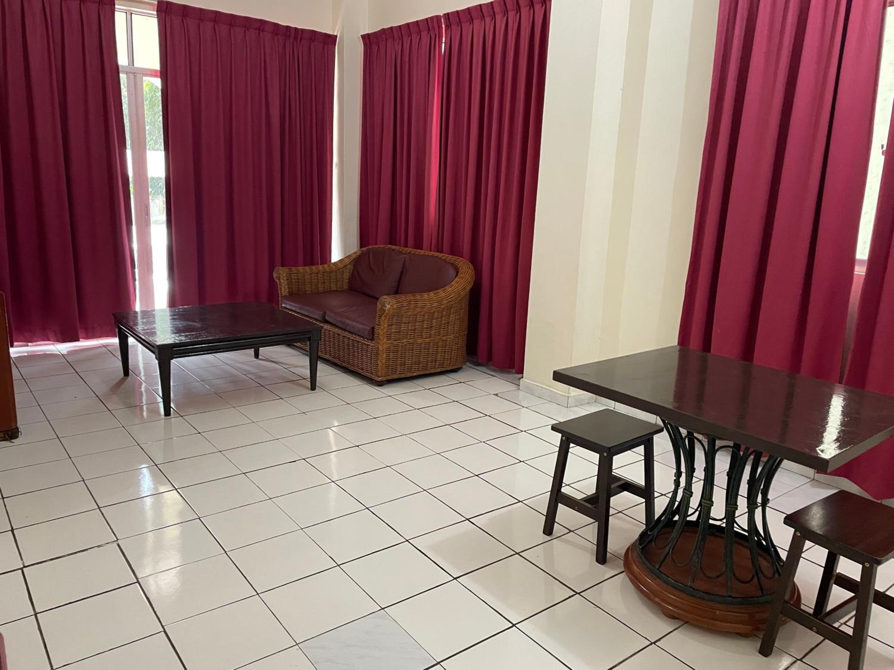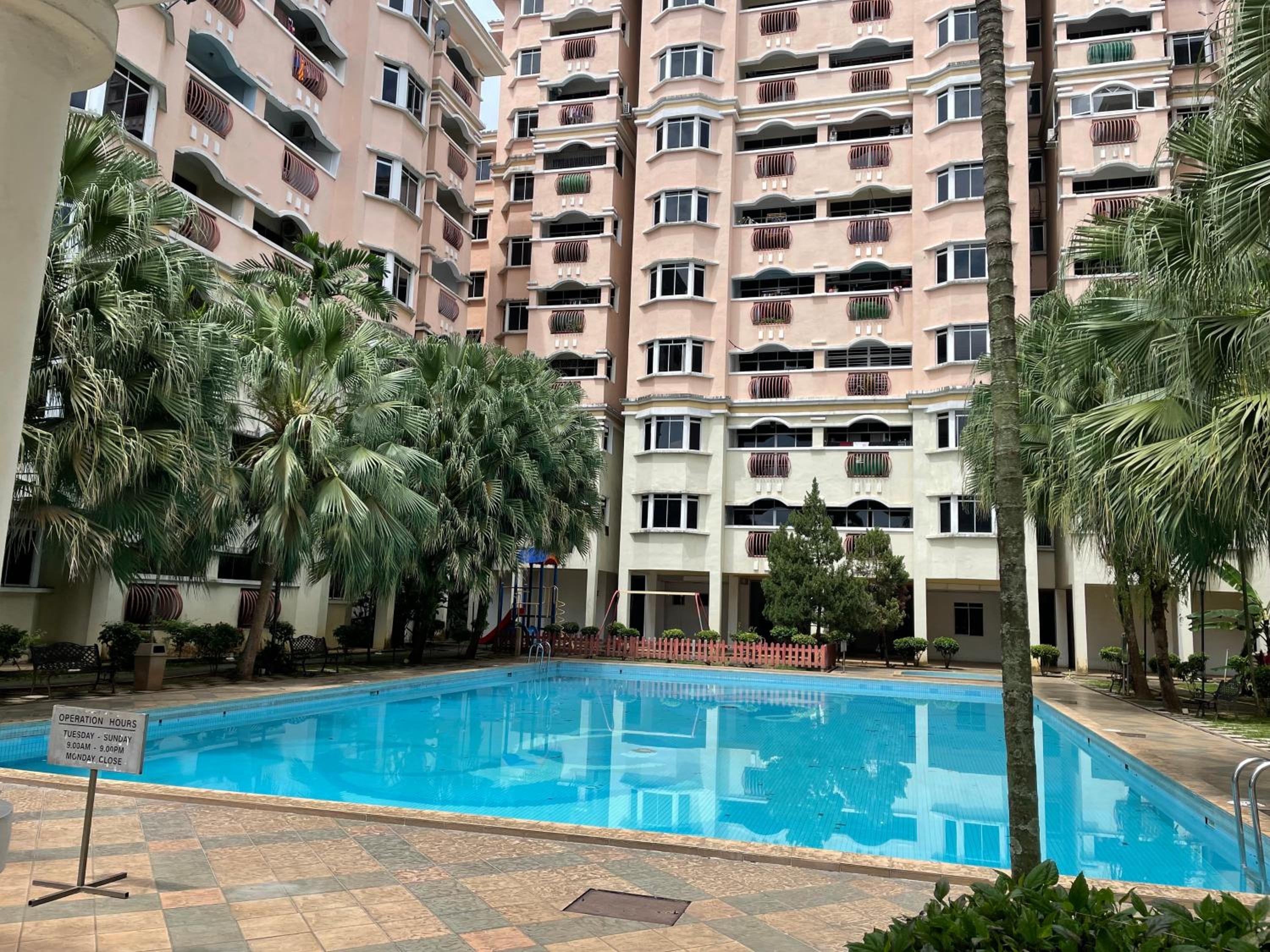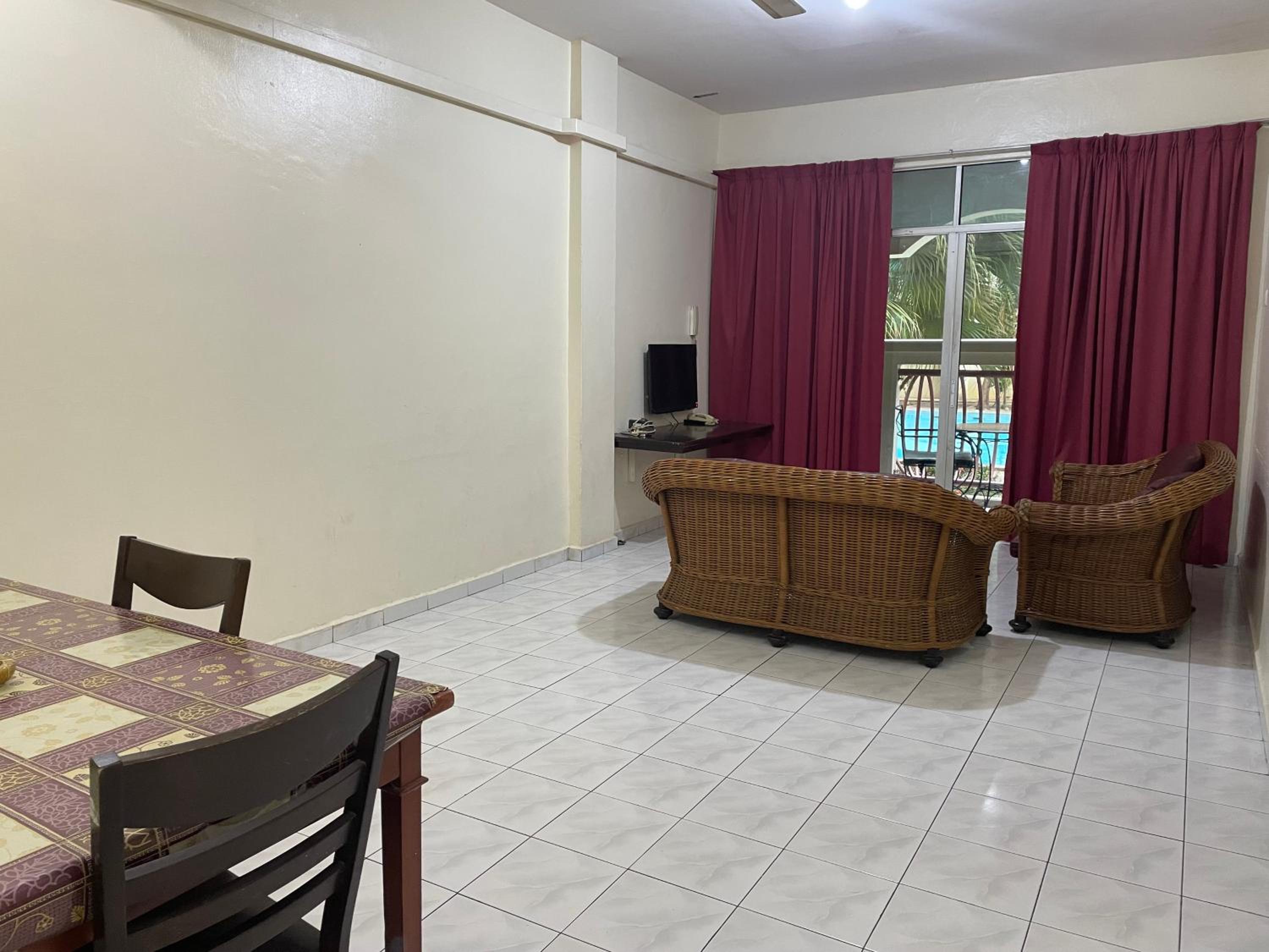 I pay RM185 per night for a run down apartment. Shower heater not working, flush not working, wear out beds, old furniture, cockroaches. The room looks like an old school hostel. And then we went to the pool, only left the place wt injury to my son’s foot as there were many tiles broken on the pool floor. My son got cut pretty deep and bleeding. I told the counter girl, they asked we to tell the problem to the security guard. They just leave it as it is not their problem. I asked for first aid kit. They only got 1 bandage. The rest are gone. 😂😂😂 For that premium price, you better of wt other newer hotel.